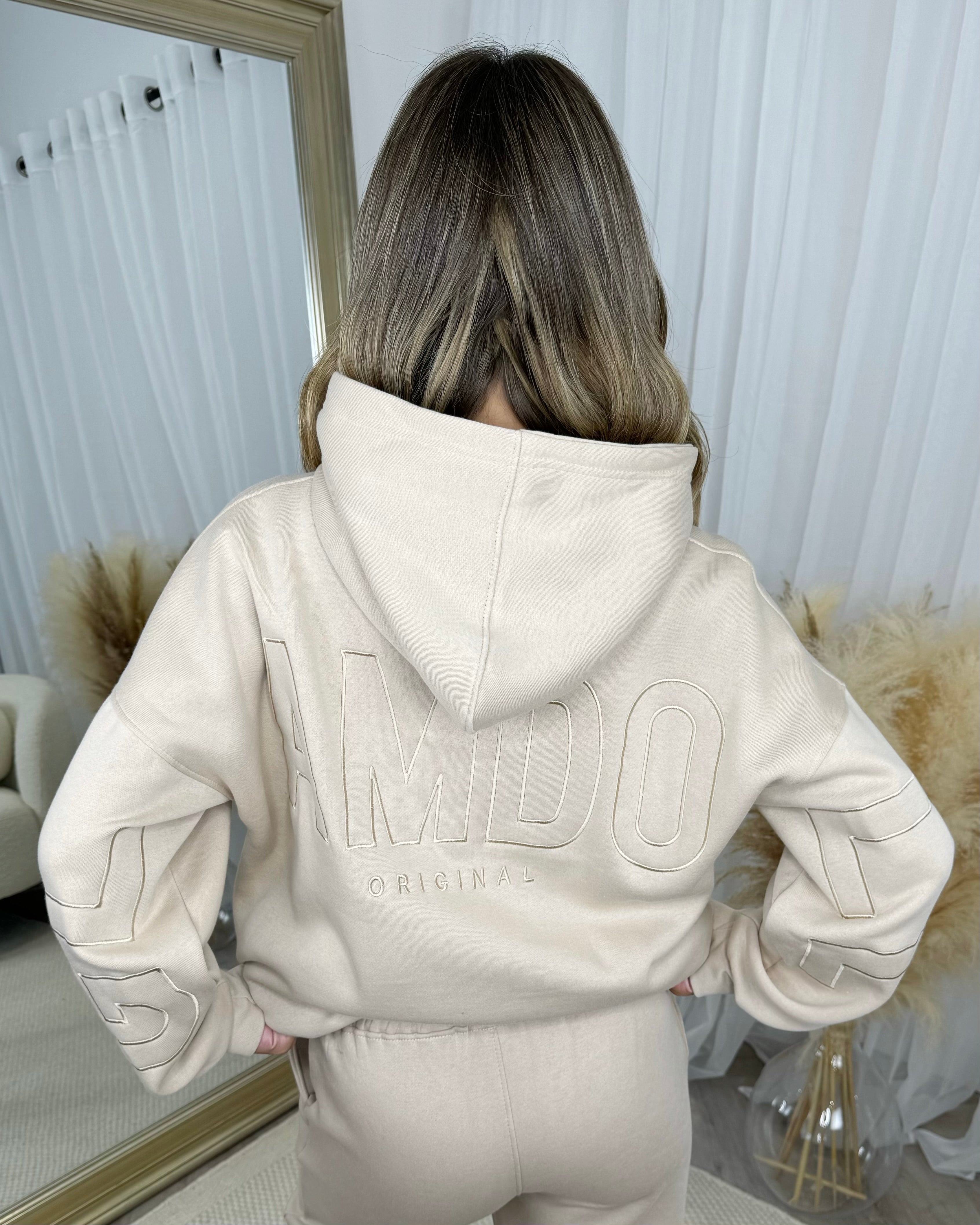 Clara 'GLAMDOLL' Embroidery Outline Detail Back Design Hoodie - Beige