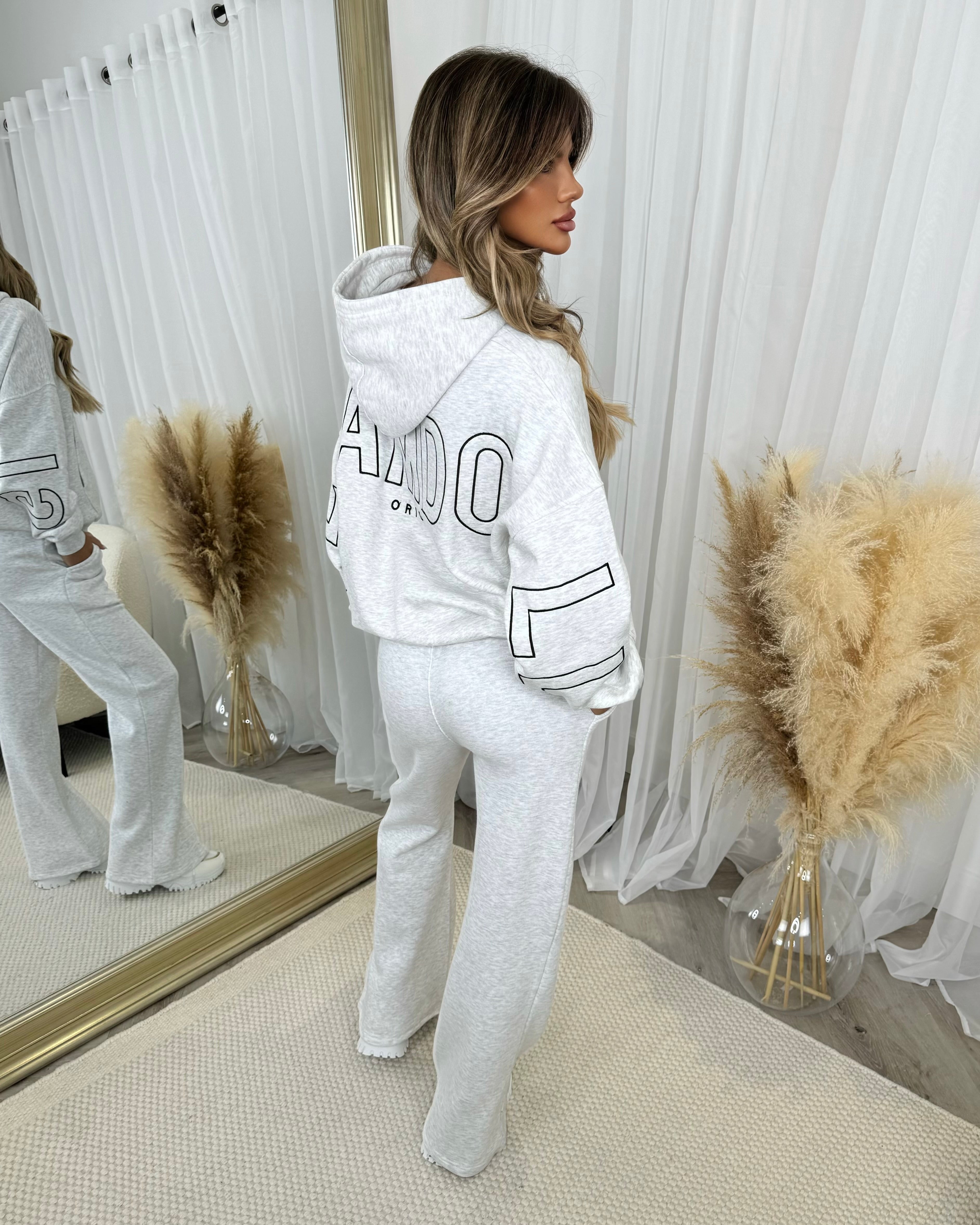 Clara 'GLAMDOLL' Embroidery Outline Detail Back Design Hoodie - Bleach Grey