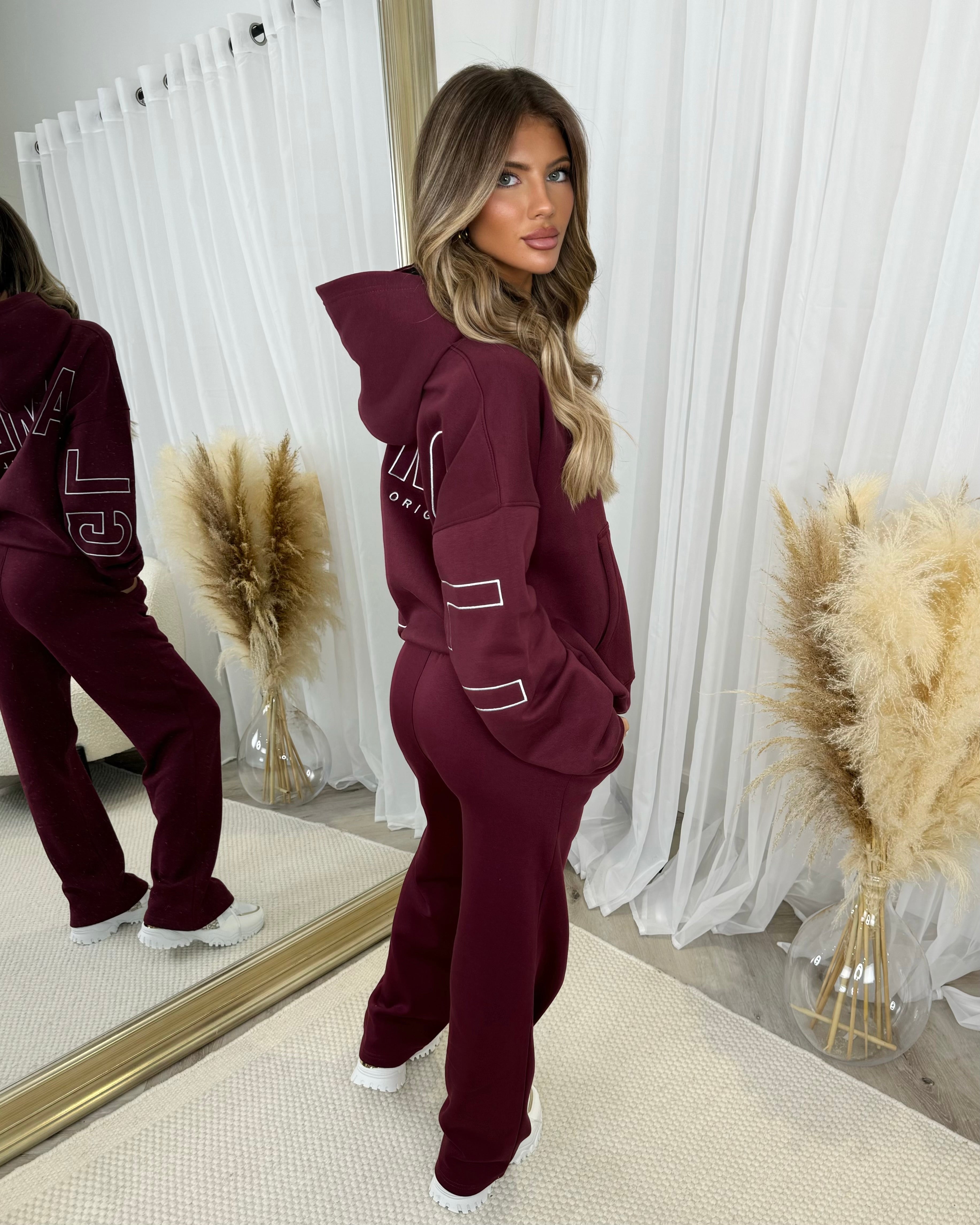 Clara 'GLAMDOLL' Embroidery Outline Detail Back Design Hoodie - Burgundy
