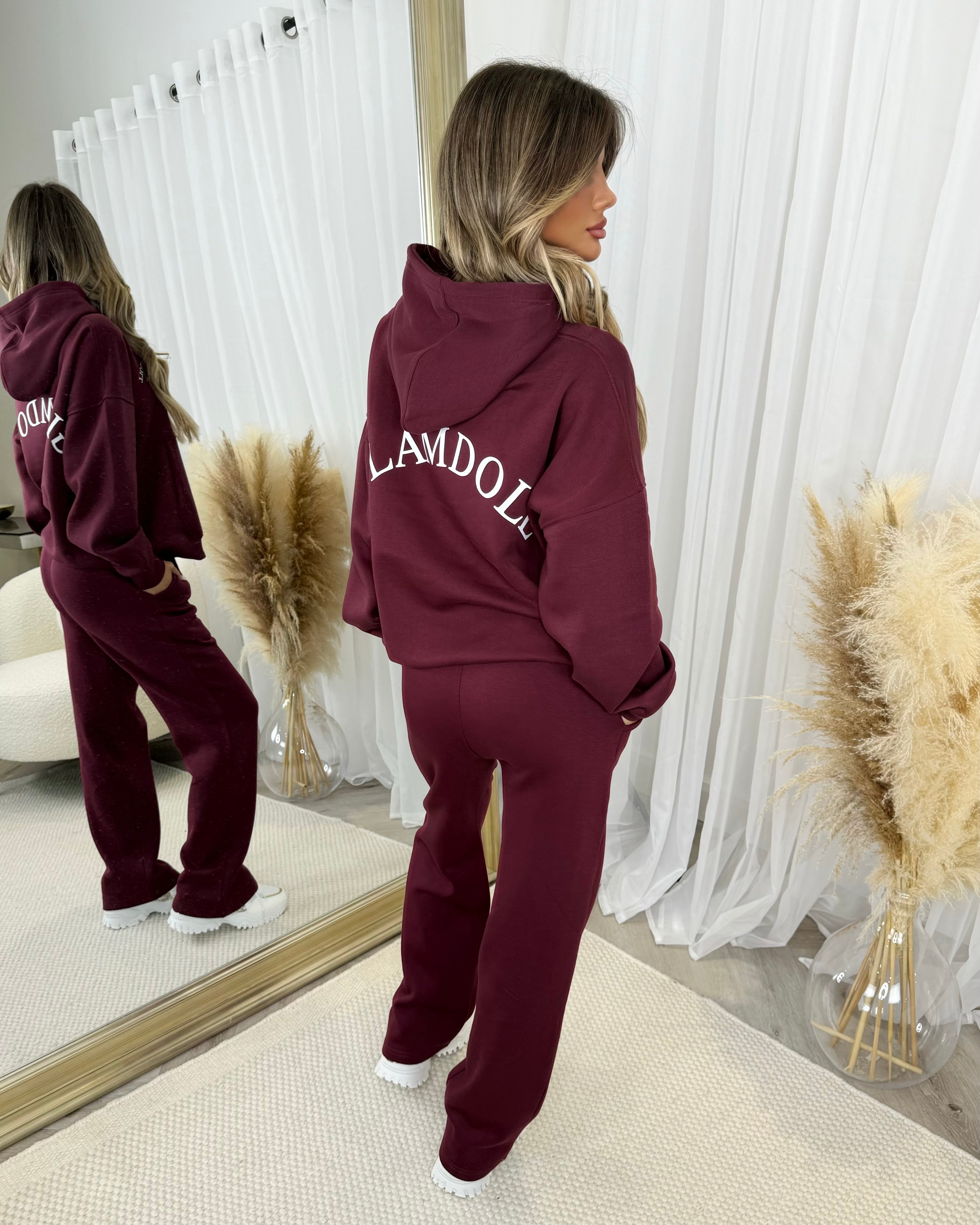 Lydia 'GLAMDOLL ORIGINAL' Front & Back Print Design Fleece Lined Hoodie - Burgundy