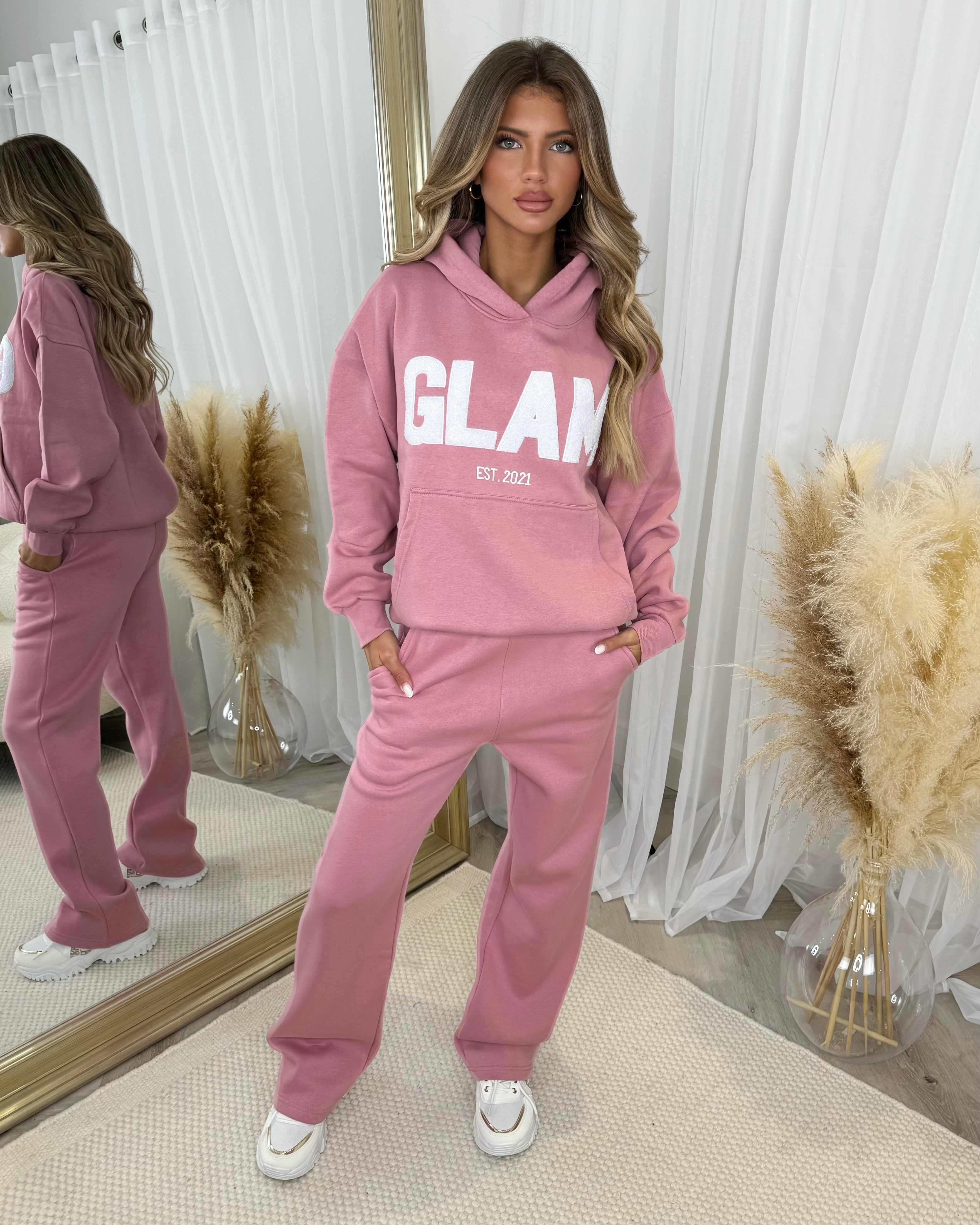Millie 'GLAM' BOLD EMOBROIDERY Front Logo Print Hoodie - Blush Pink