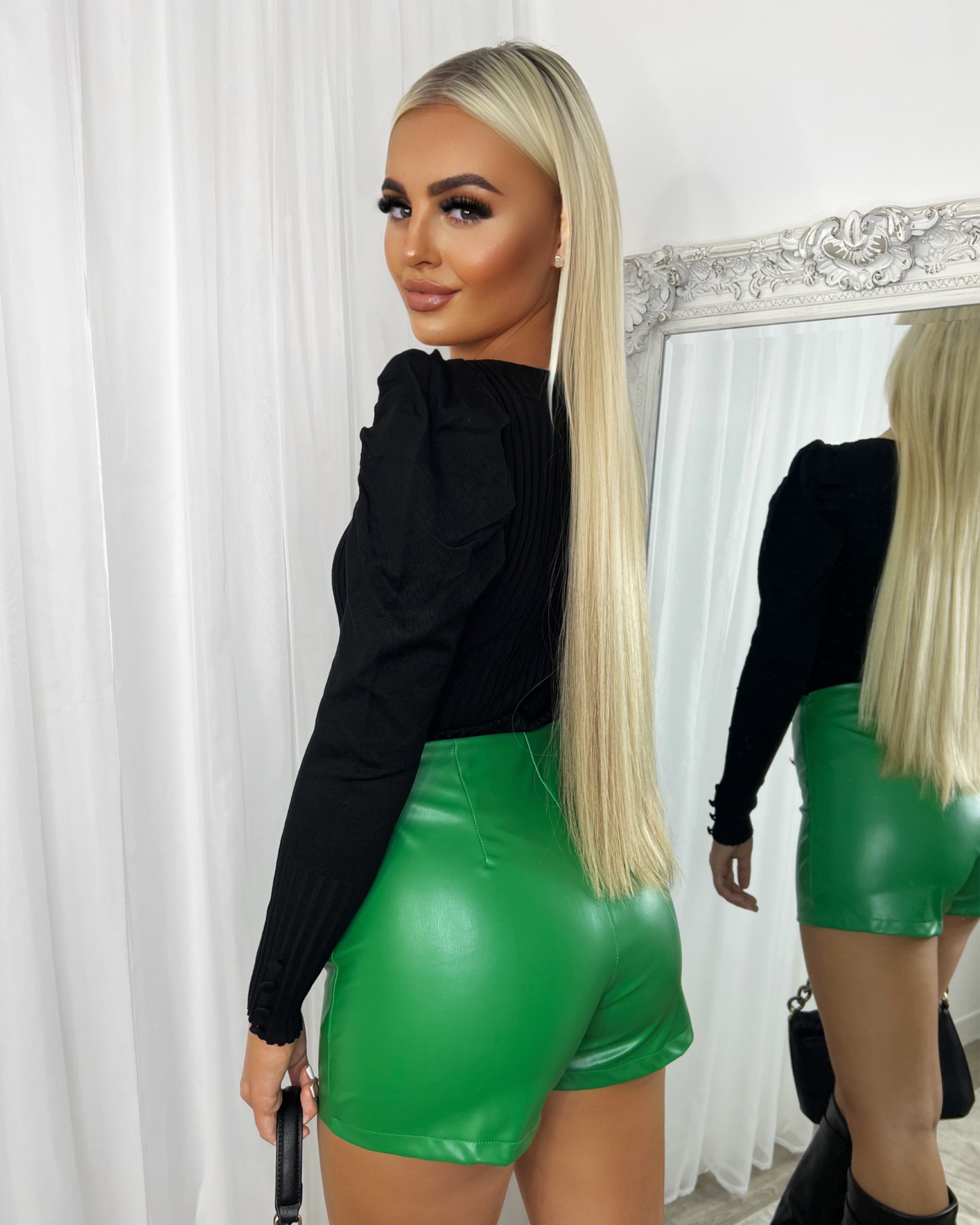 Mollie Puff Sleeve Ribbed Bodysuit - Black