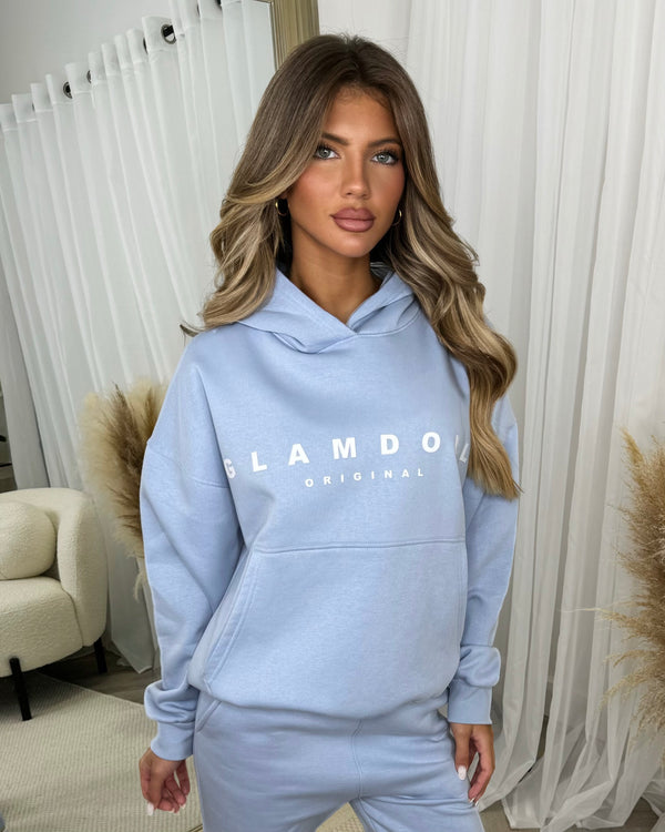 Skylar 'GLAMDOLL' High Density Front Detail Fleece Lined Hoodie - Baby Blue