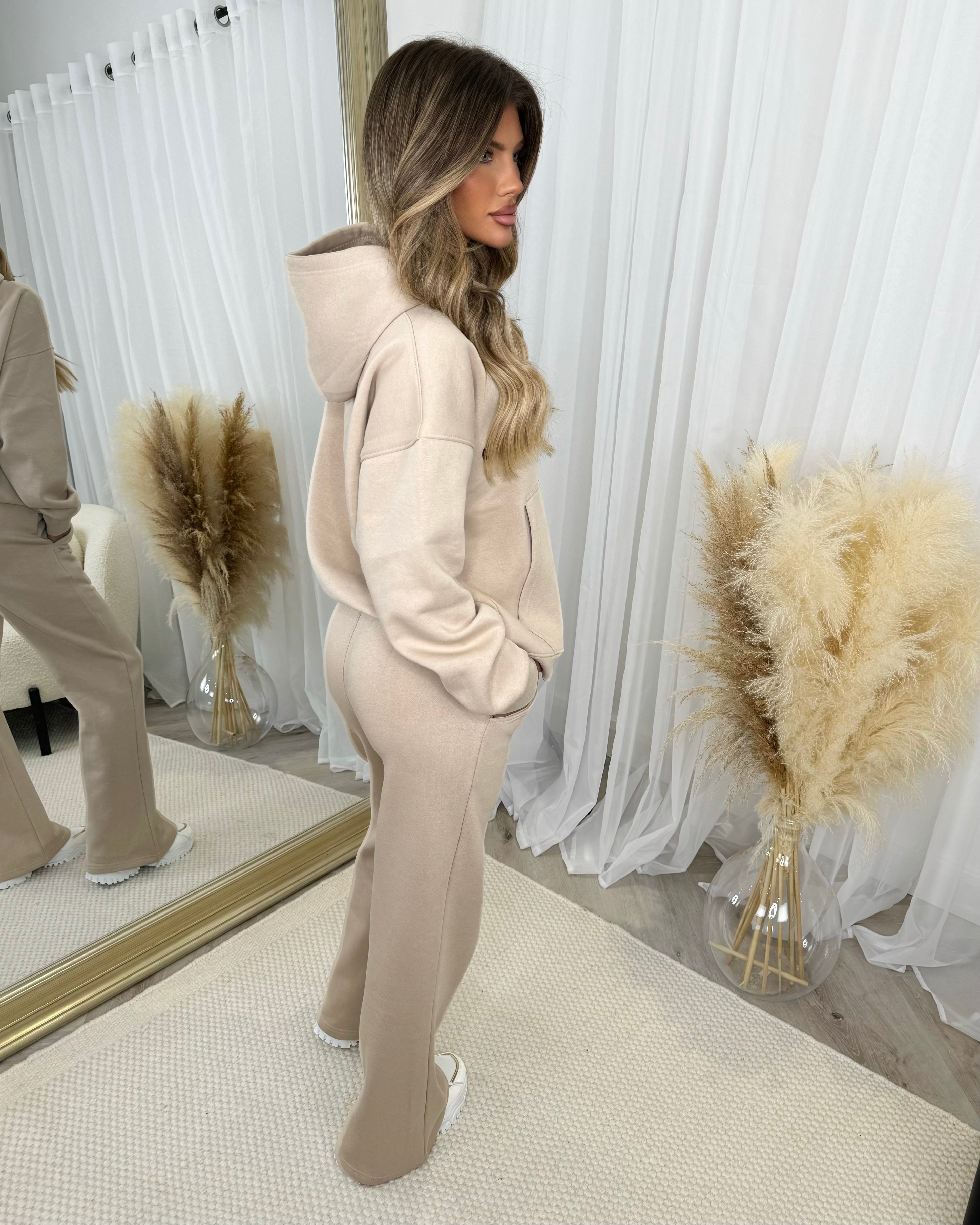Skylar 'GLAMDOLL' High Density Front Detail Fleece Lined Hoodie - Beige