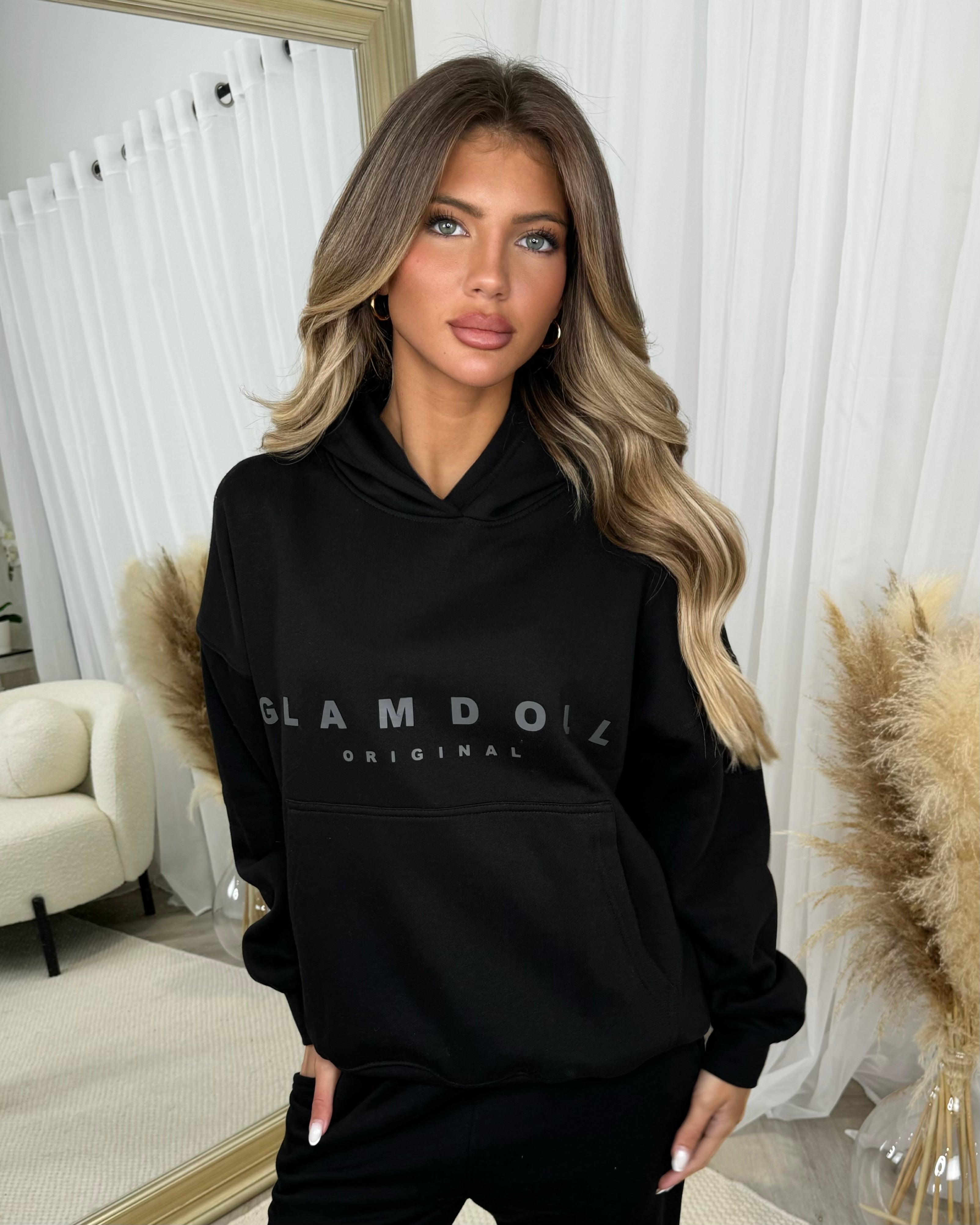 Skylar 'GLAMDOLL' High Density Front Detail Fleece Lined Hoodie - Black