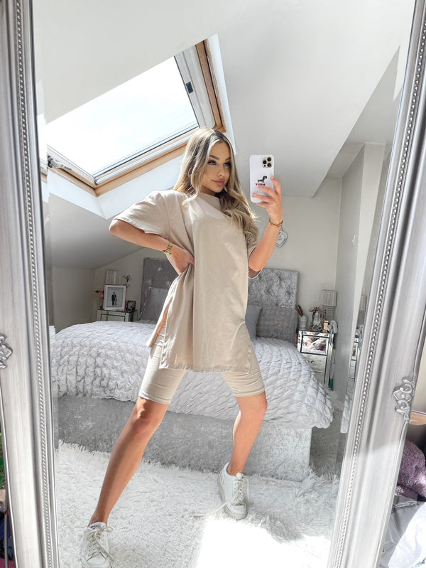 Sutton Side Split T-Shirt & Short Set - Beige