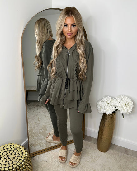 Kayla Frill Full Zip Loungewear - Khaki