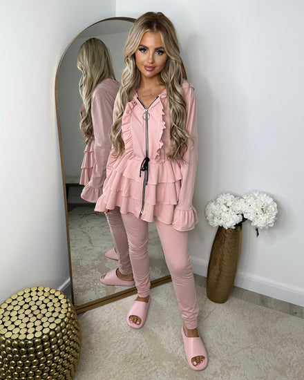Kerri Ribbed Jewelled Detail Lounge Set - Pink