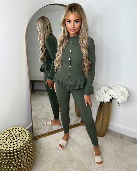 Rachael Ruched Sleeve Hoodie with Ribbon Detail - Khaki