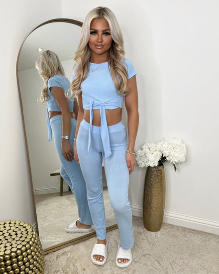 Evie High Neck Gold Button Loungewear Set - Navy