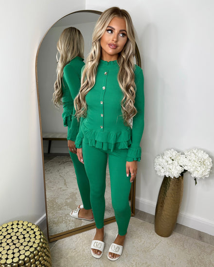 Kerri Ribbed Jewelled Detail Lounge Set - Camel