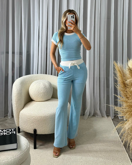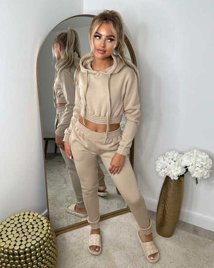 Alicia Cropped Hoodie & Trousers Loungewear Set - Beige