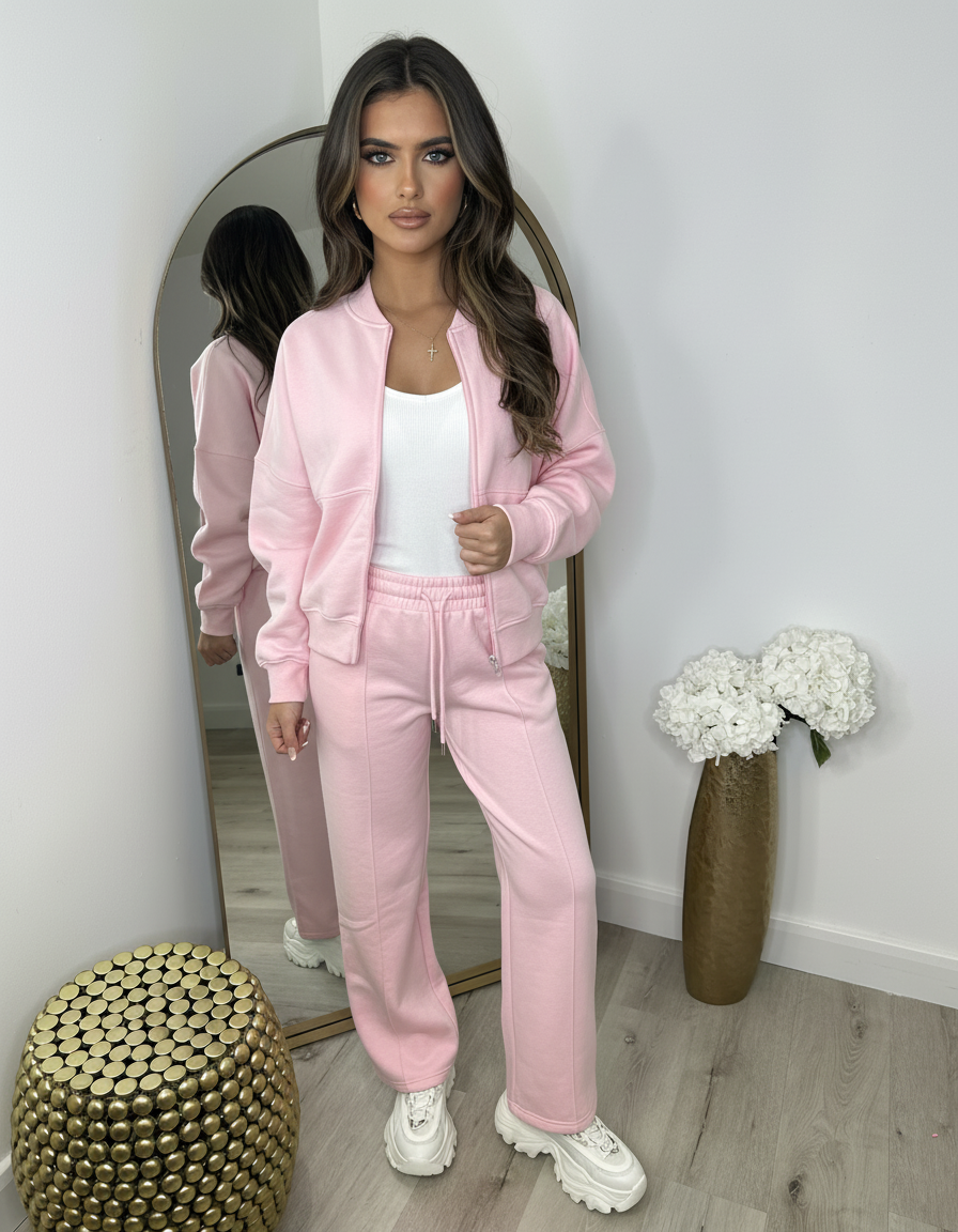 Amelia Bomber Zip Jacket & Straight Leg Joggers Set- Baby Pink