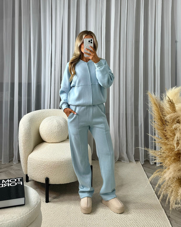 Amelia Bomber Zip Jacket & Straight Leg Joggers Set- Sky Blue