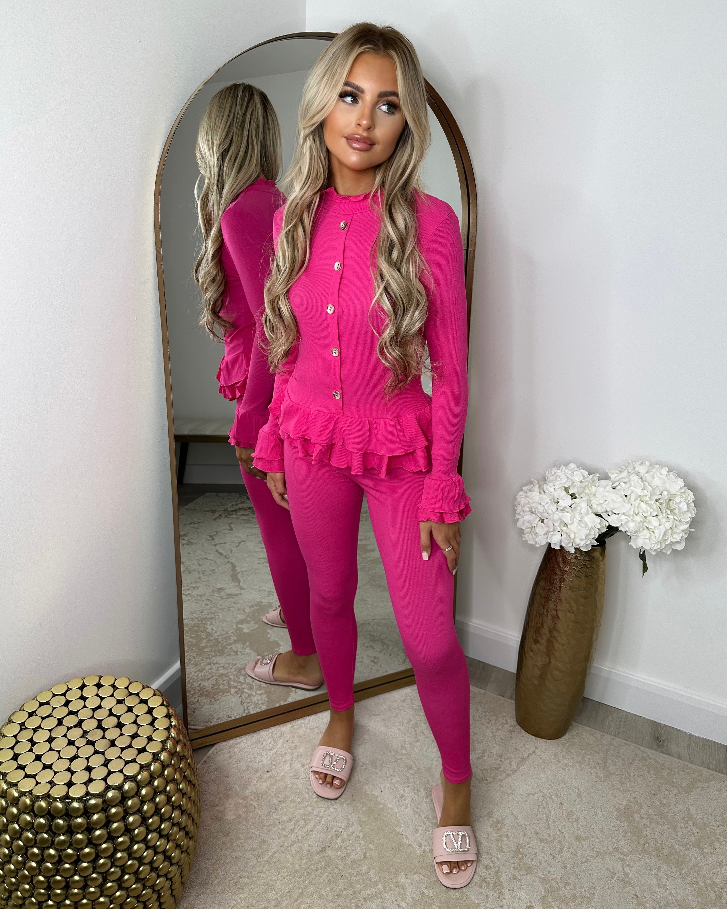Amira Gold Button Ribbed Loungeset - Fuchsia