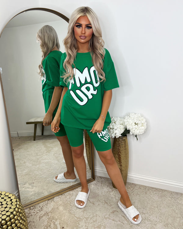 AMOUR T-Shirt & Cycling Short Set - Bottle Green