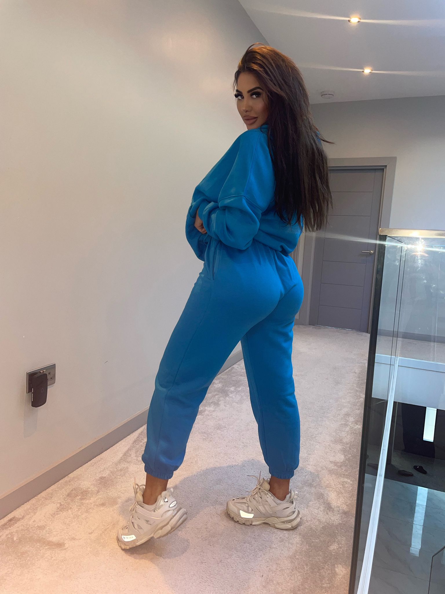 Eliana Oversized Hooded Tracksuit Set - Bright Blue