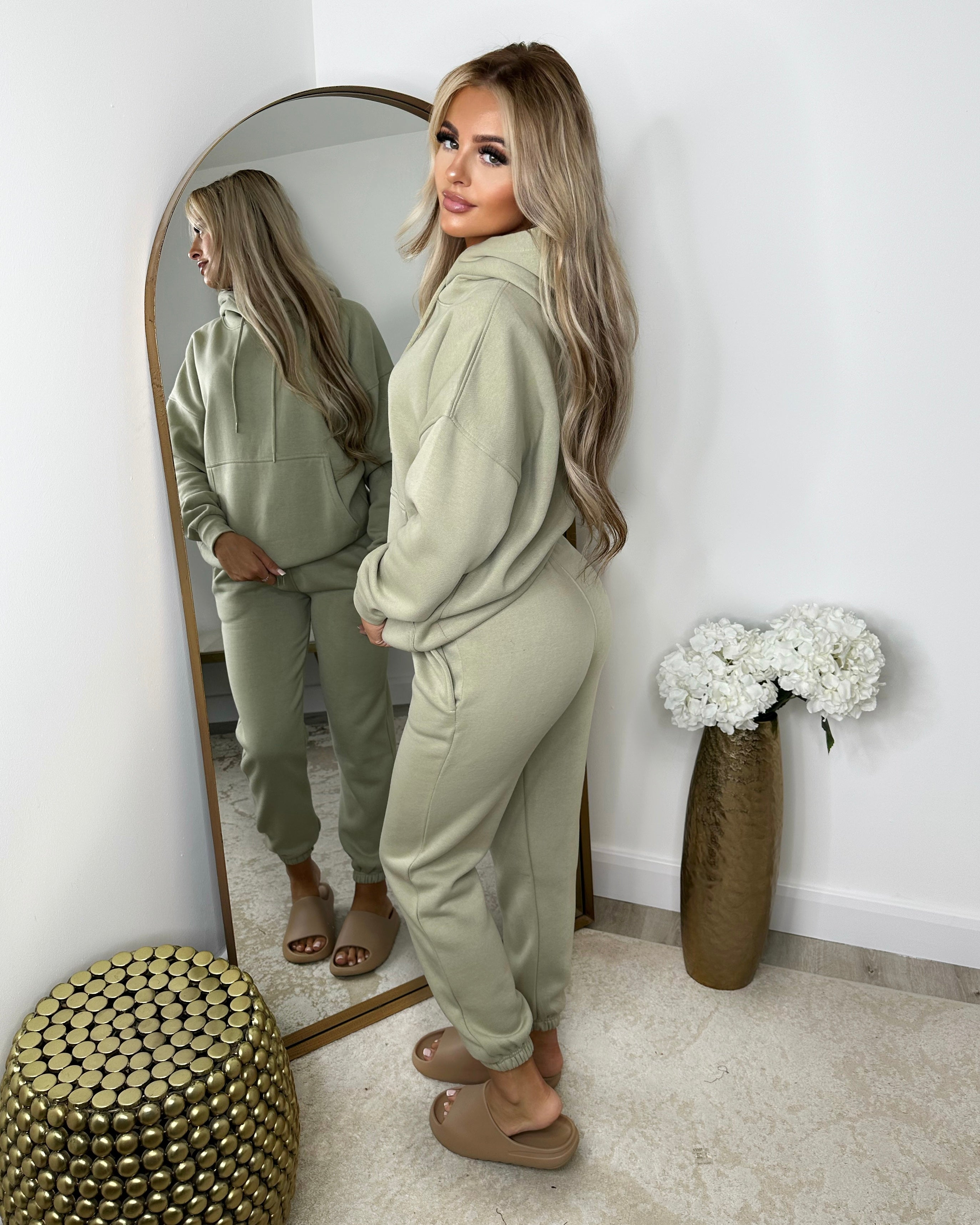 Eliana Oversized Hooded Tracksuit Set - Sage Green