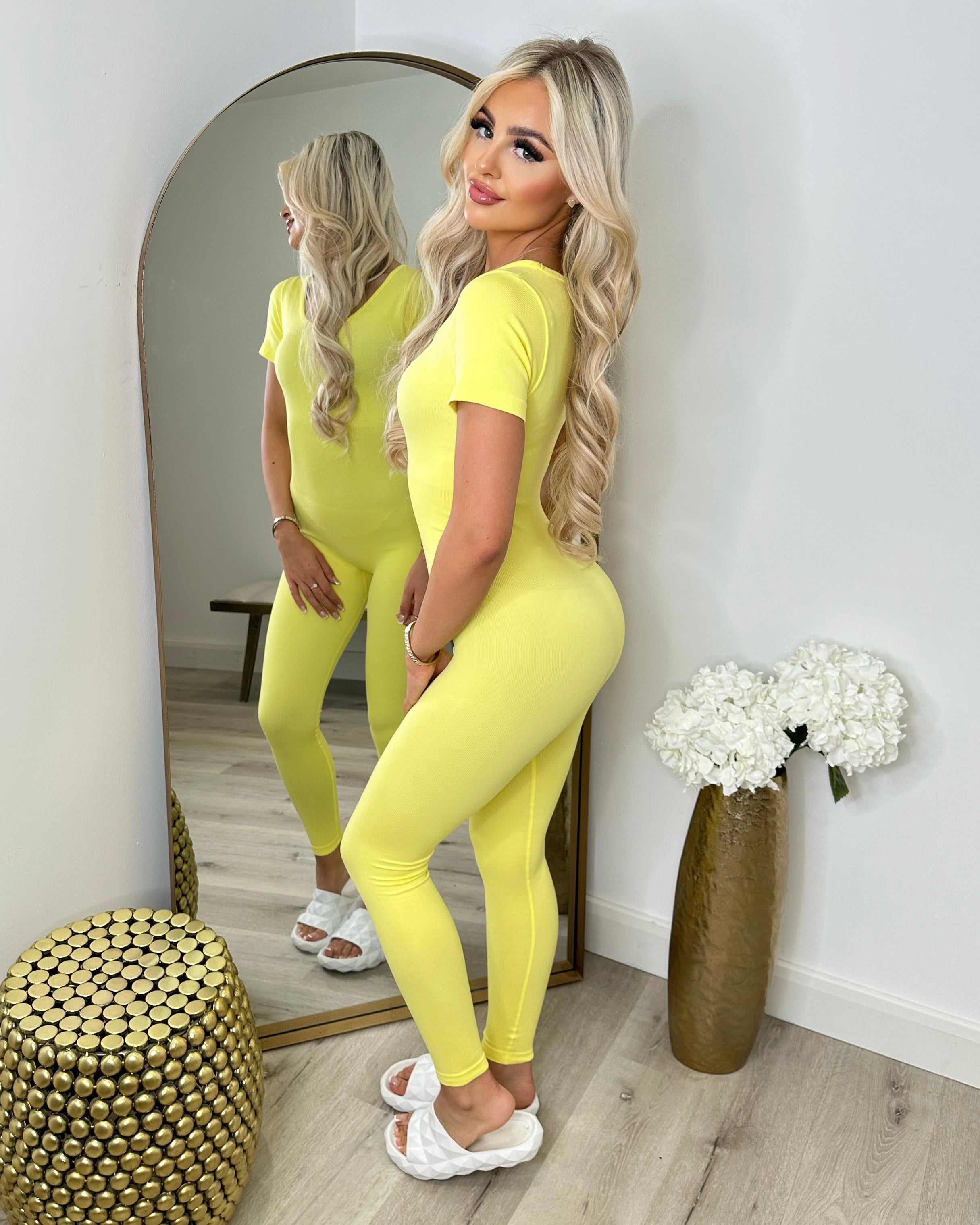 Ellie Capped Sleeve Unitard Jumpsuit - Yellow