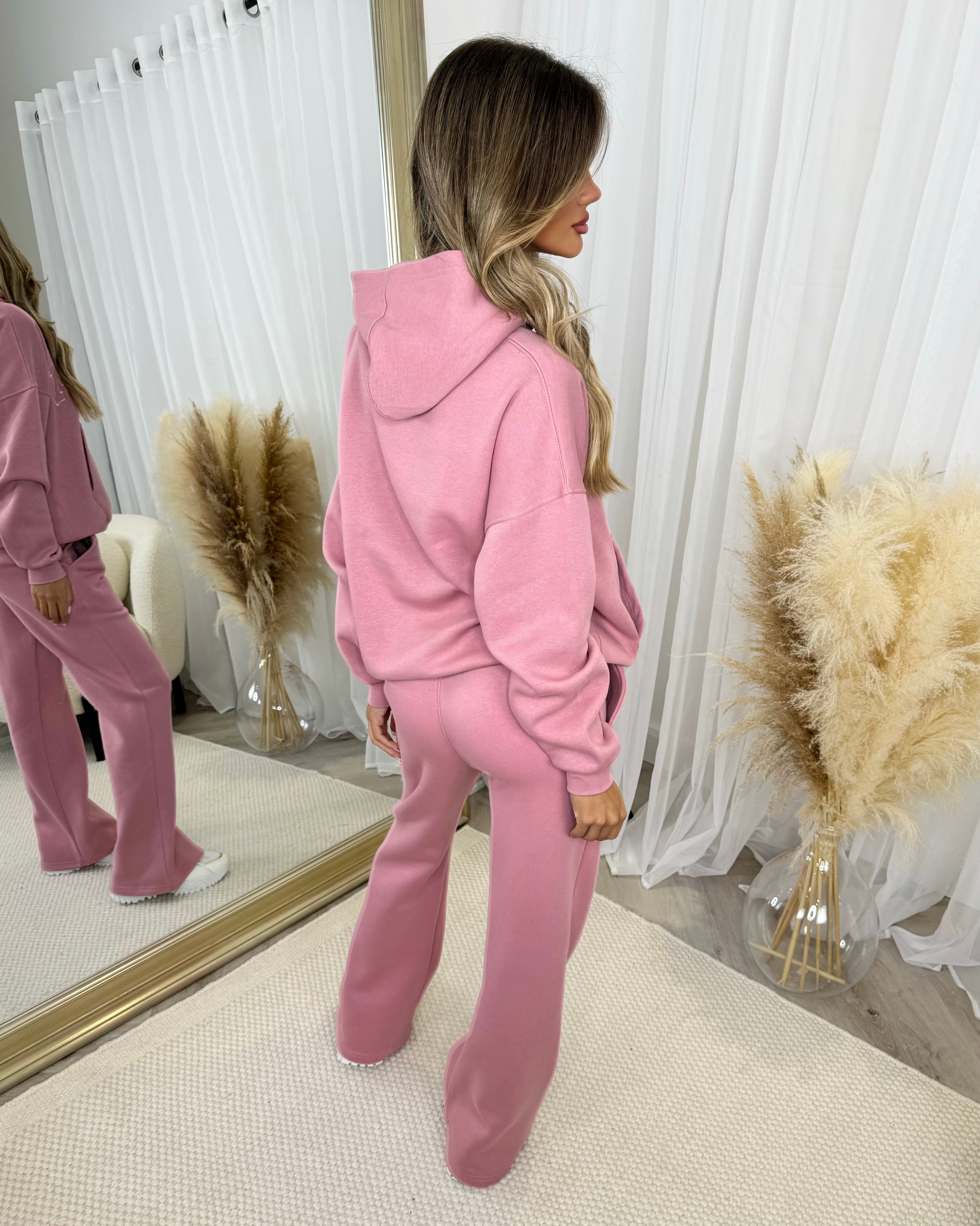 Emily 'GLAM' Embroidery Outline Front Design Fleece Lined Hoodie - Blush Pink