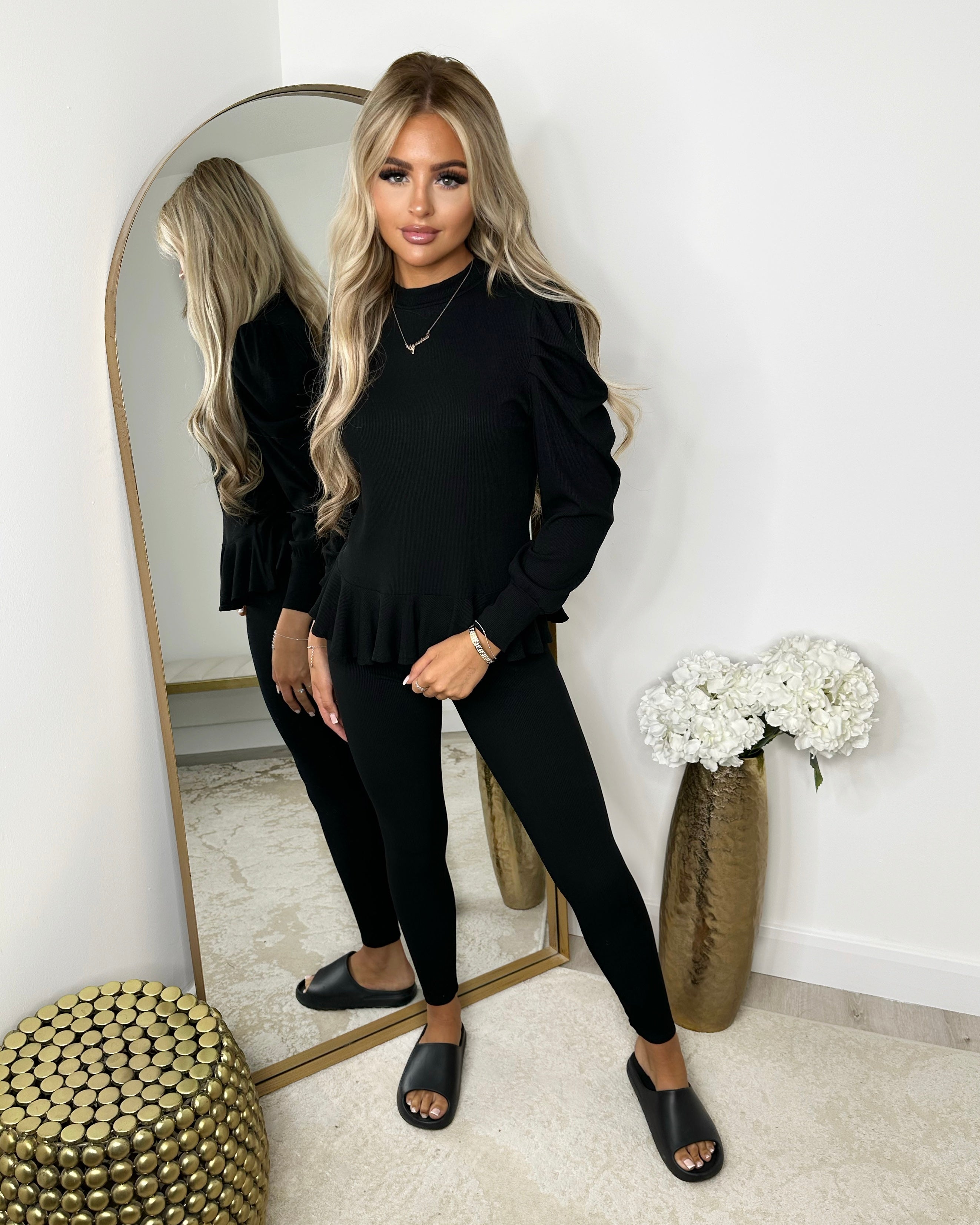 Fefe Puff Sleeve Ribbed Loungewear - Black