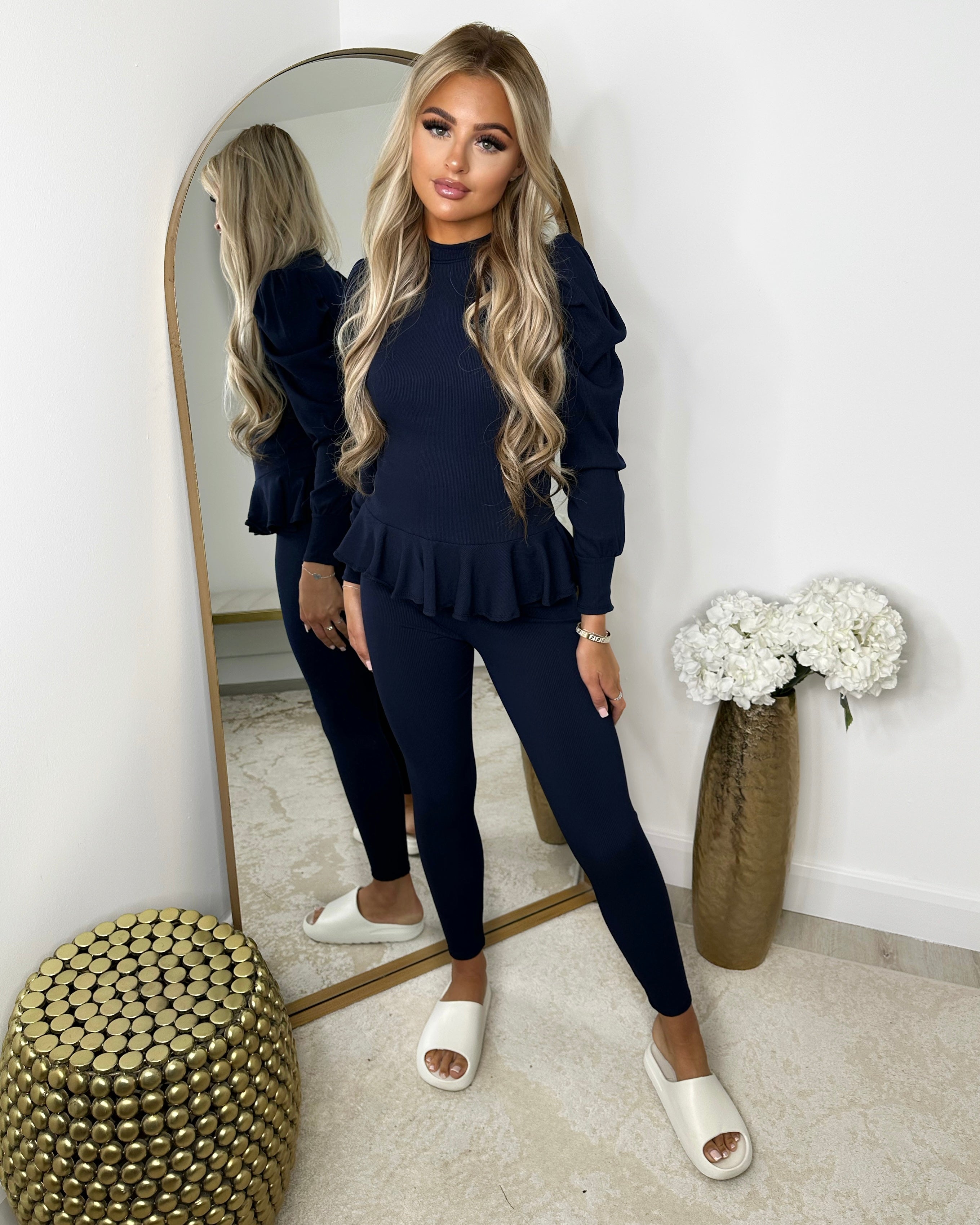 Fefe Puff Sleeve Ribbed Loungewear - Navy