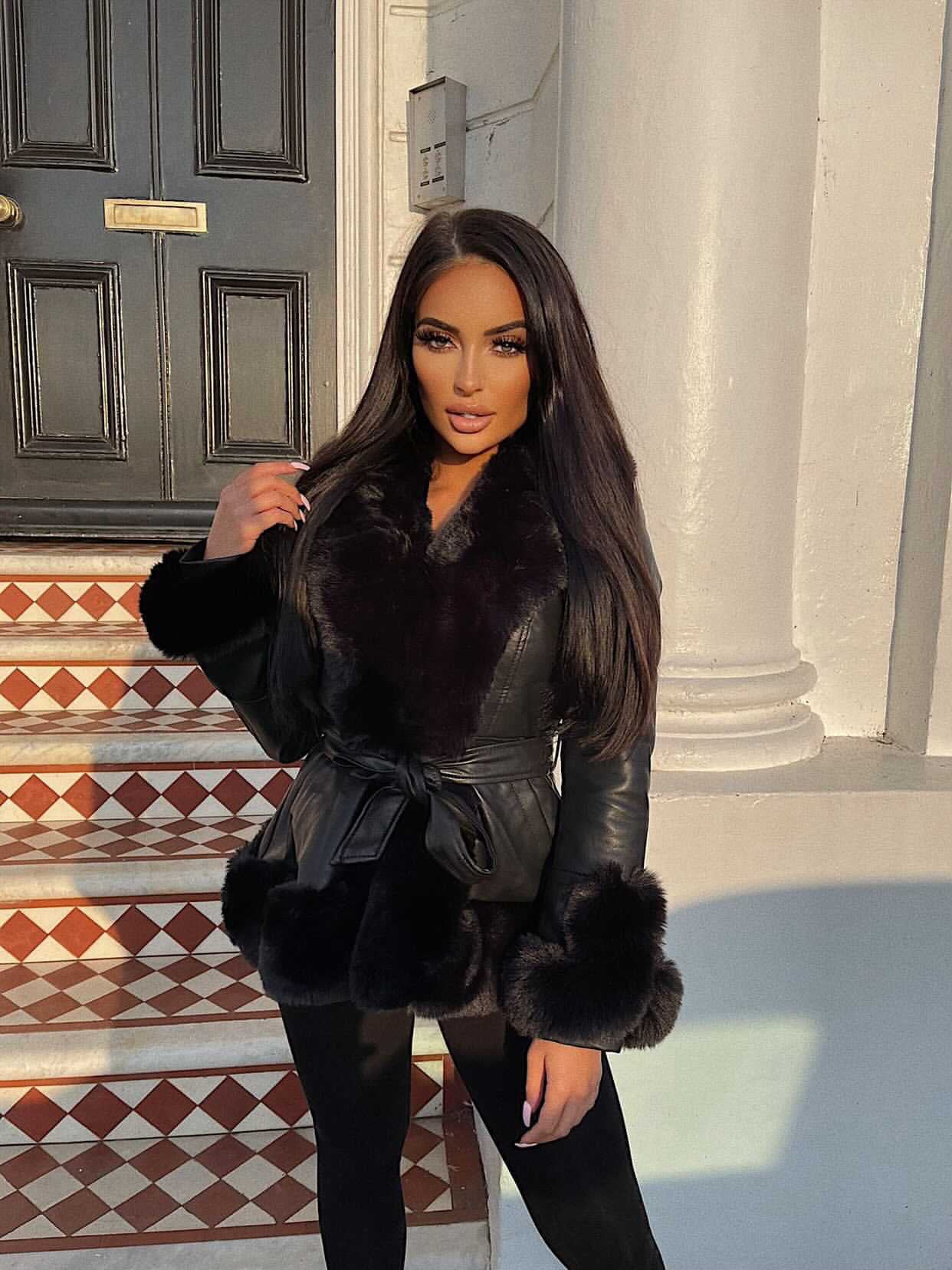 Freya Belted Fur Coat - Black