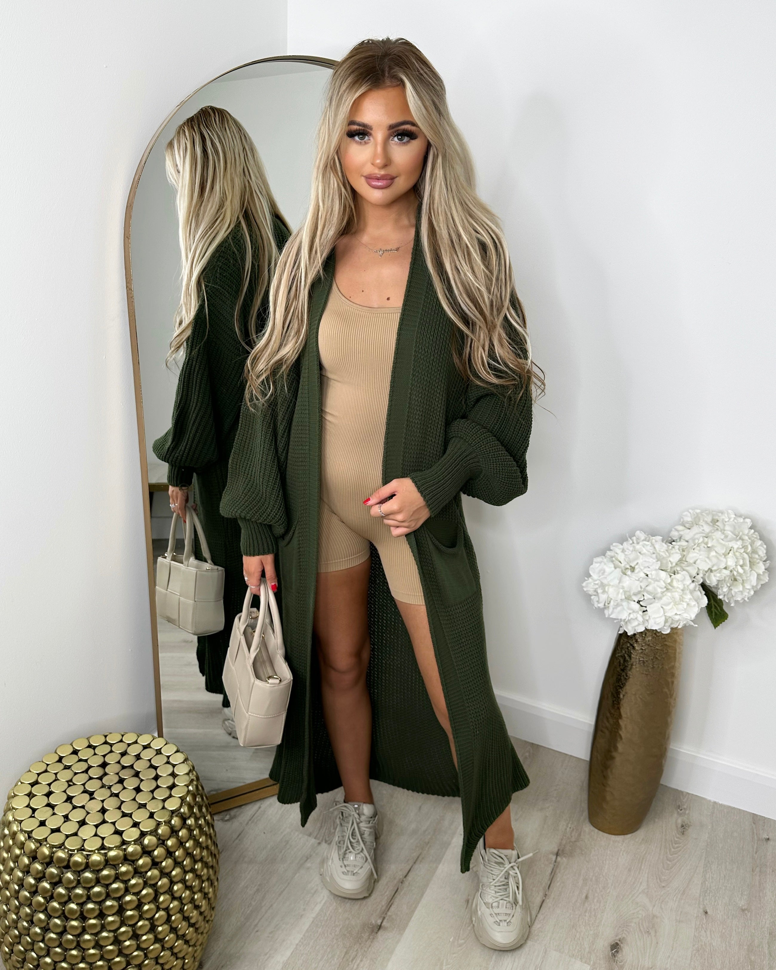 Gabriella Knitted Long Cardigan - Khaki
