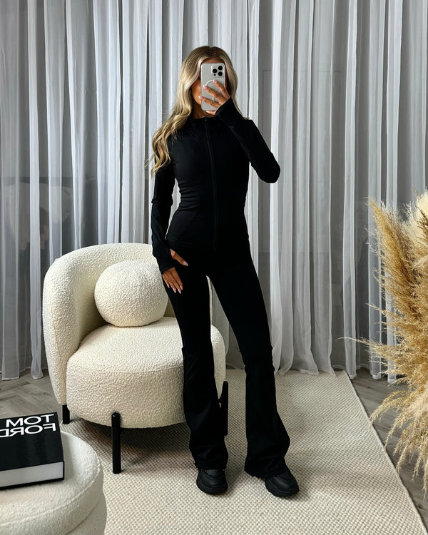 Hope Zip Jacket & Flared Trouser Gym Set - Black