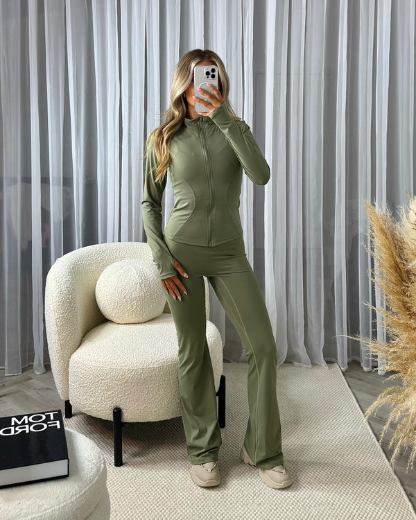 Hope Zip Jacket & Flared Trouser Gym Set - Khaki