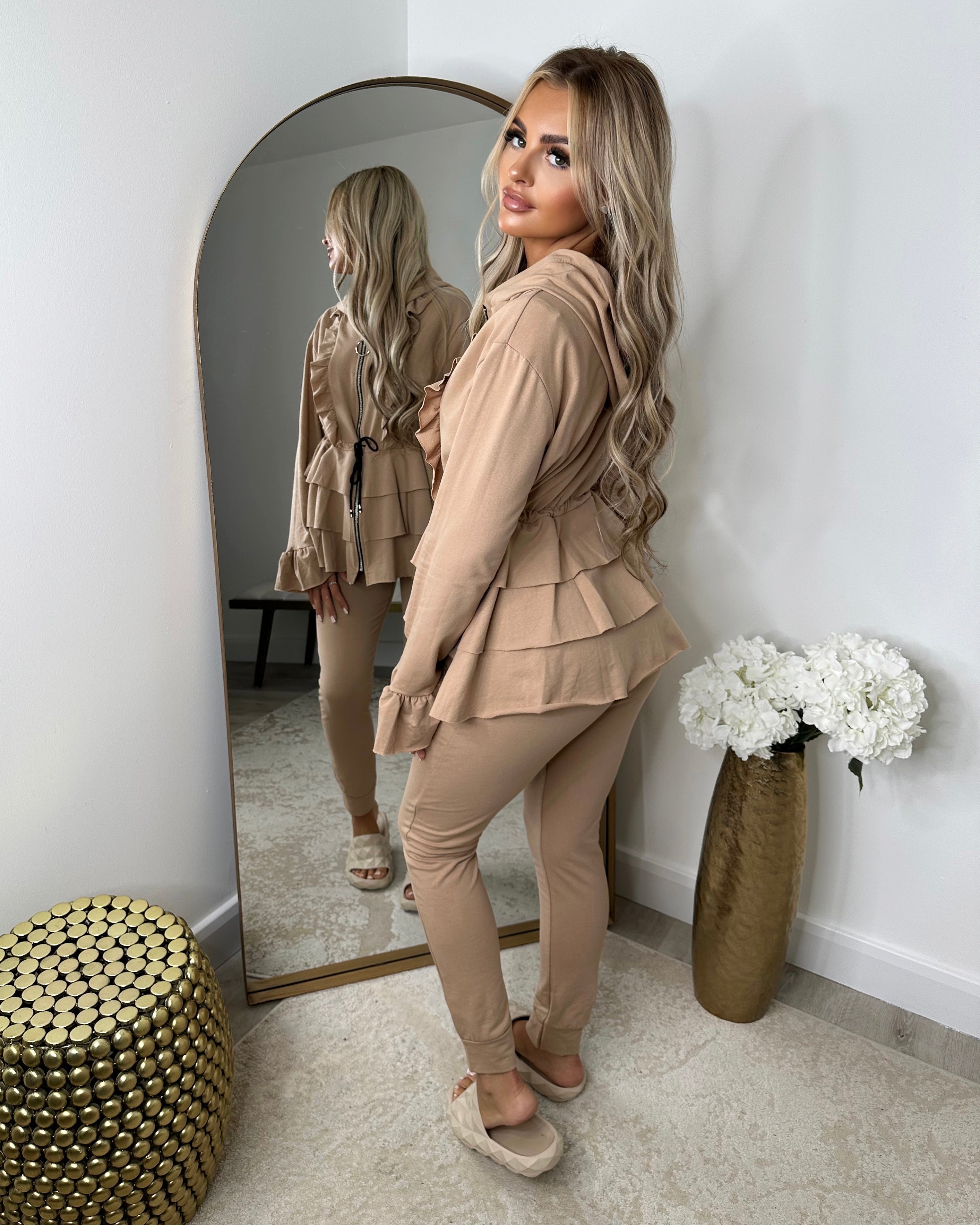 Kayla Frill Full Zip Loungewear - Camel