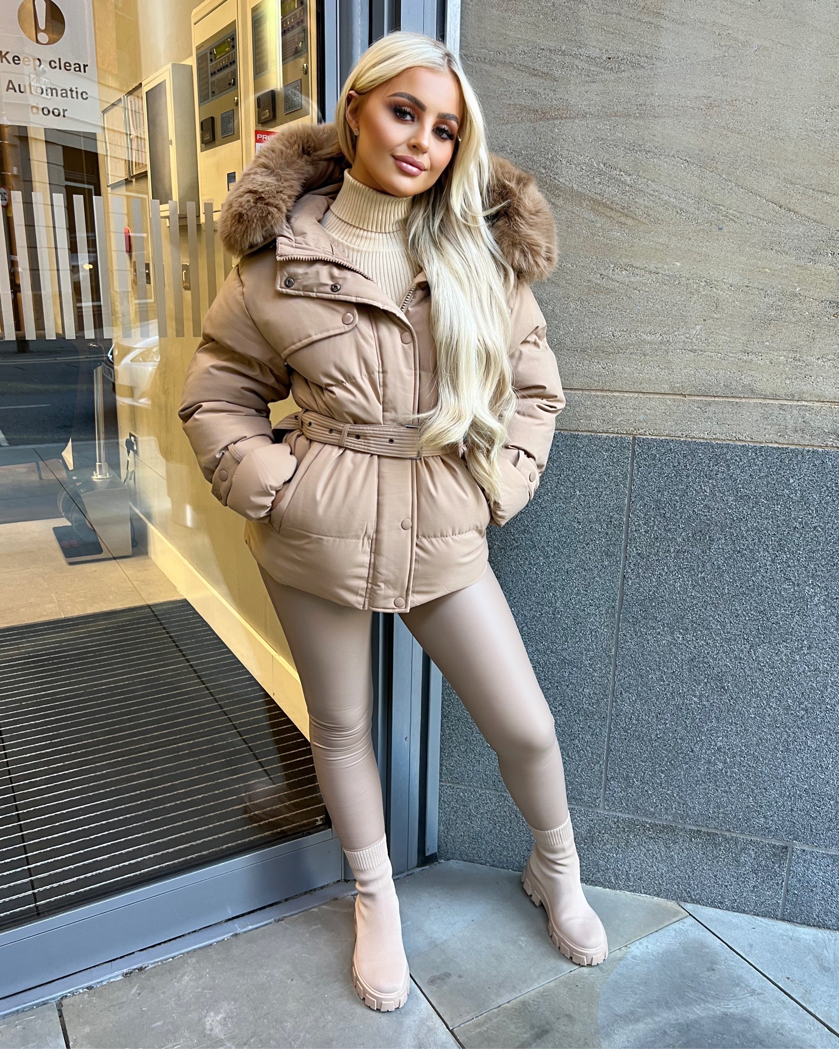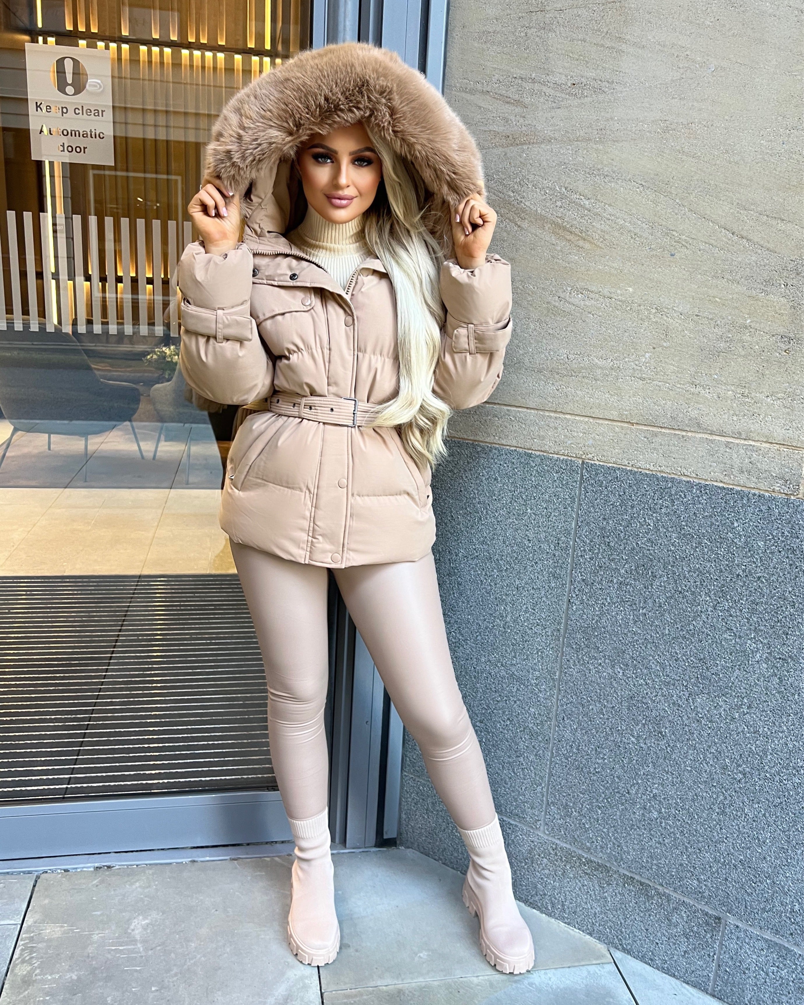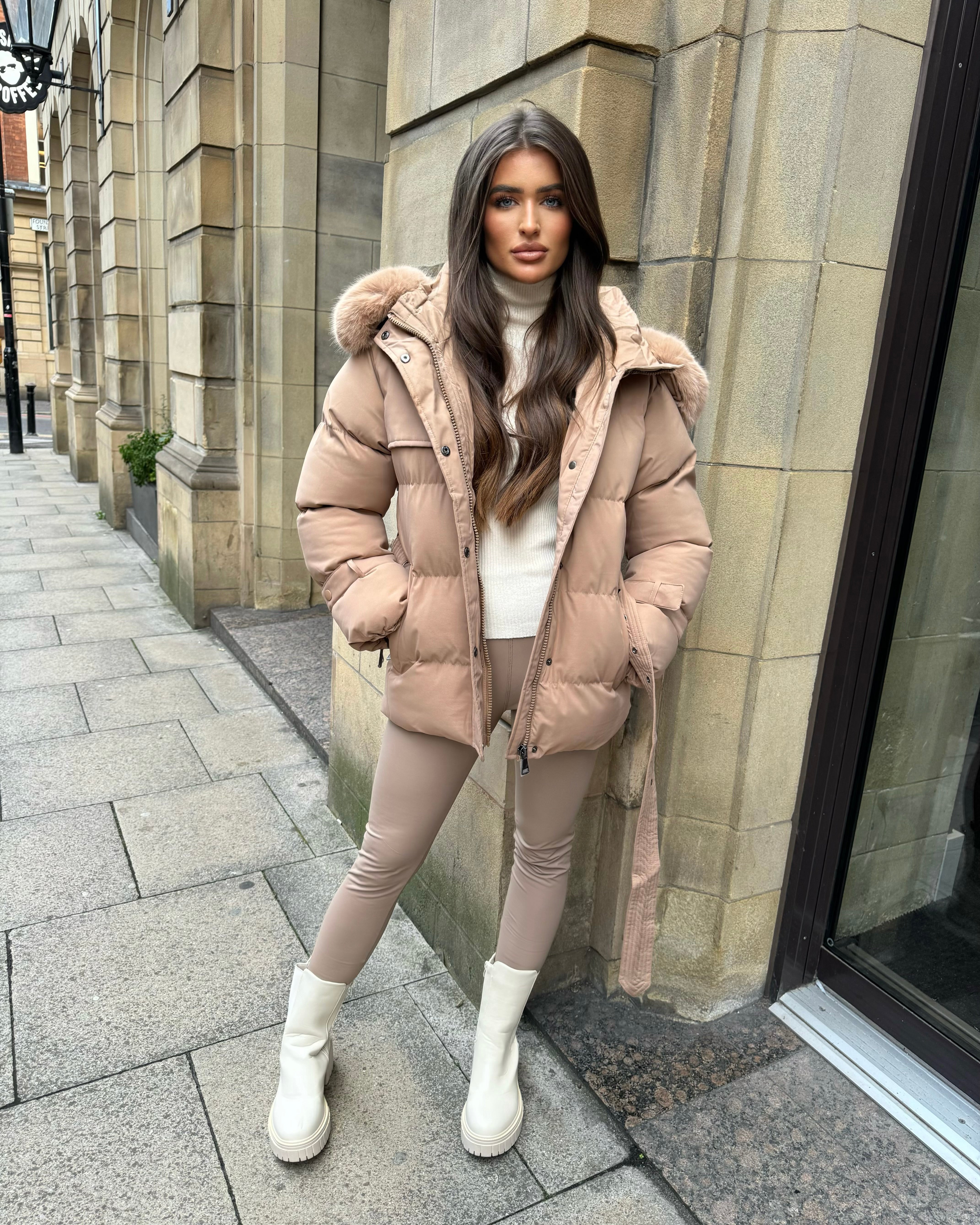 Kelsey Padded Faux Fur Hooded Coat - Camel