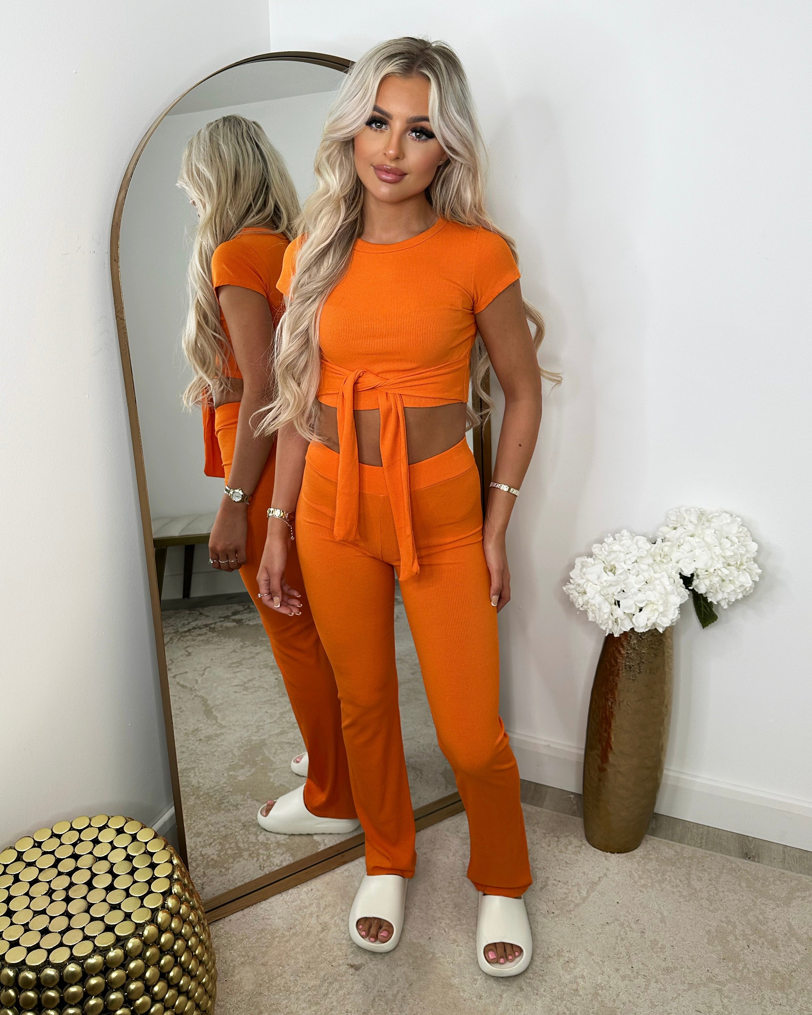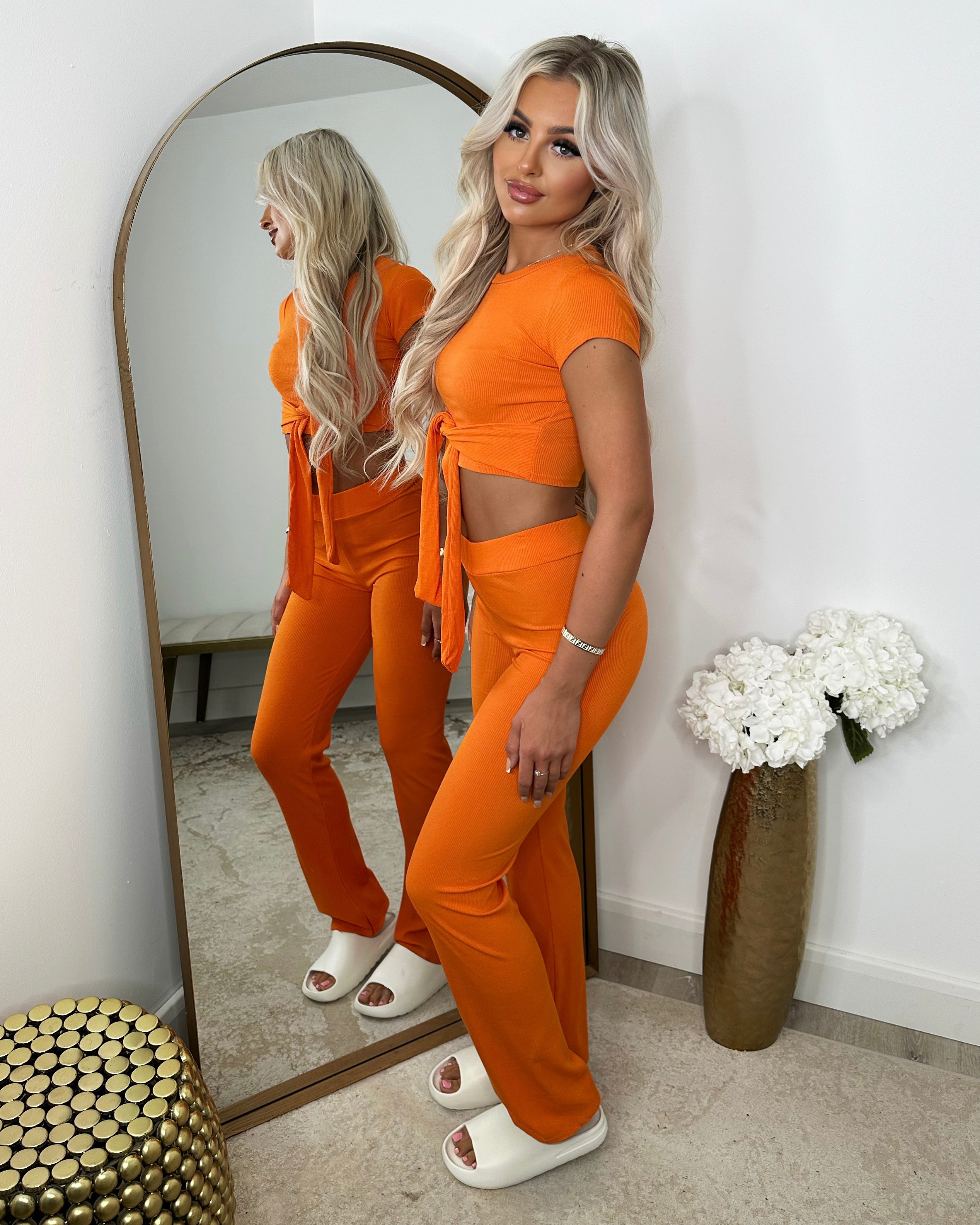 Laura Tie Front Cropped Loungewear Set - Orange