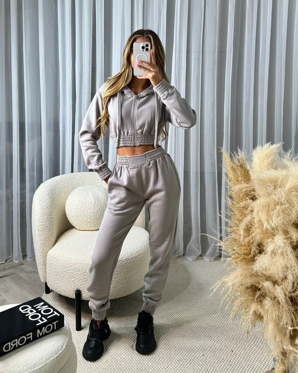 Letita Zip Front Hooded Tracksuit - Dove Grey