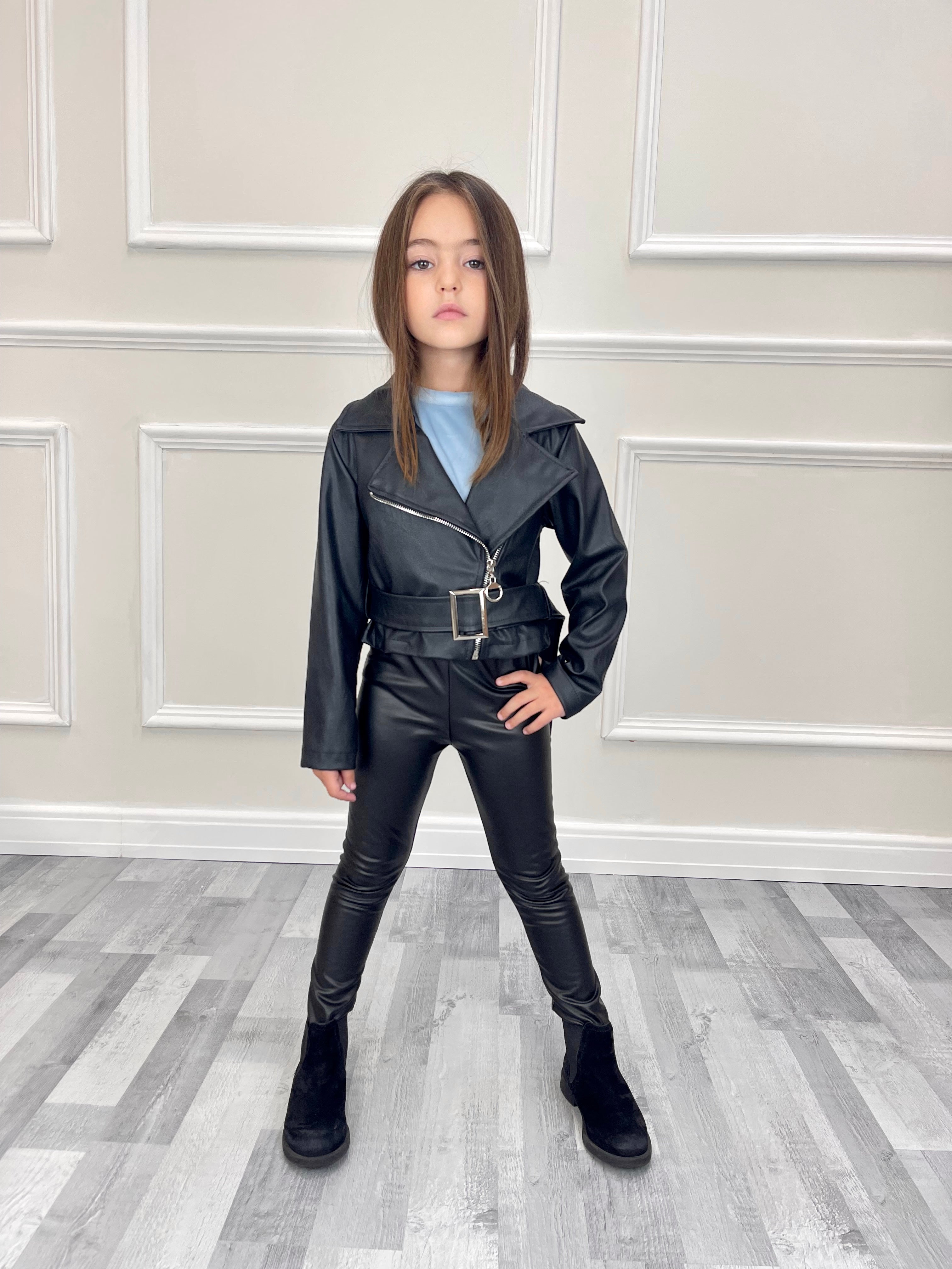 Lucy PU Belted Leather Look Biker Jacket - Black