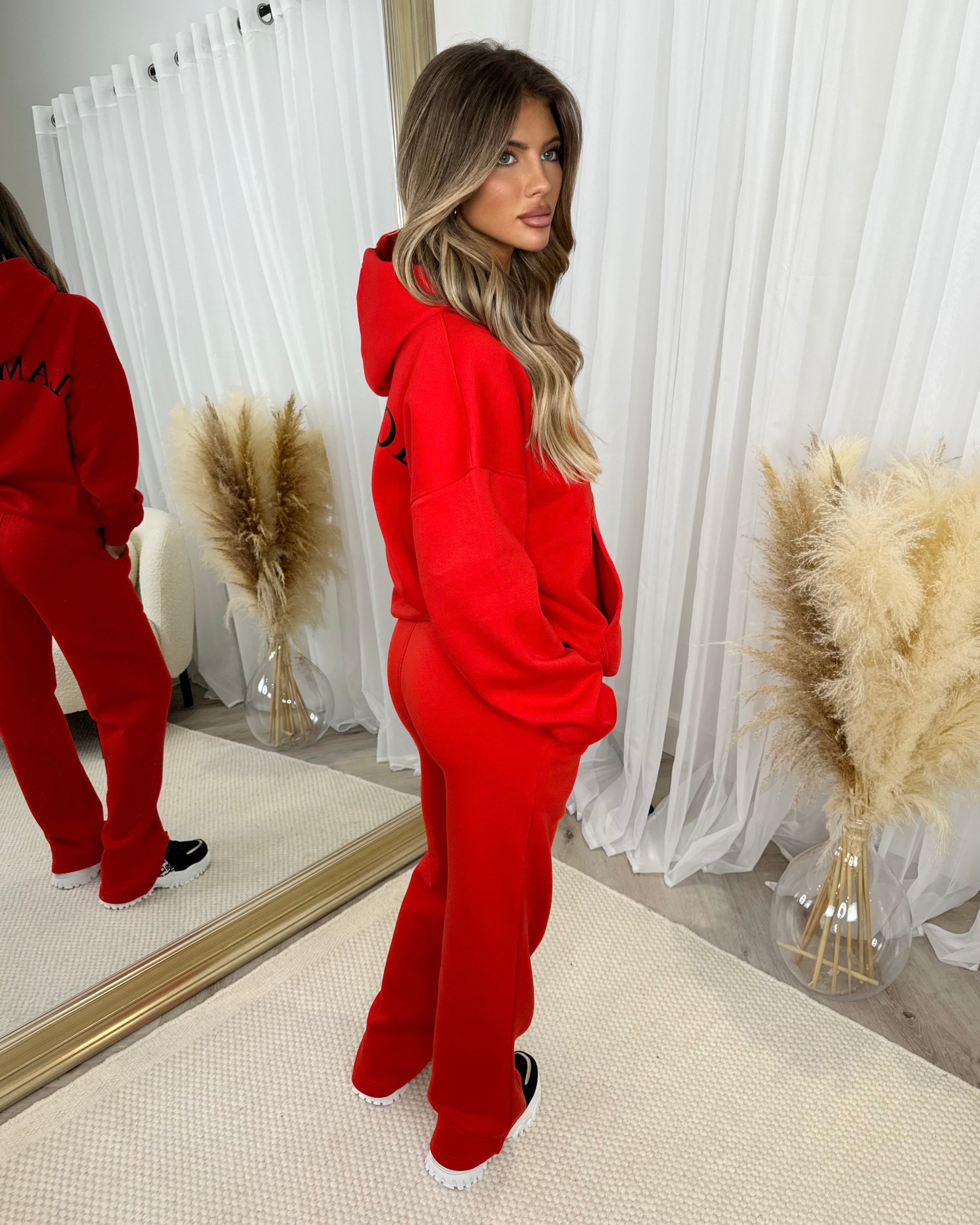 Lydia 'GLAMDOLL ORIGINAL' Front & Back Print Design Fleece Lined Hoodie - Red
