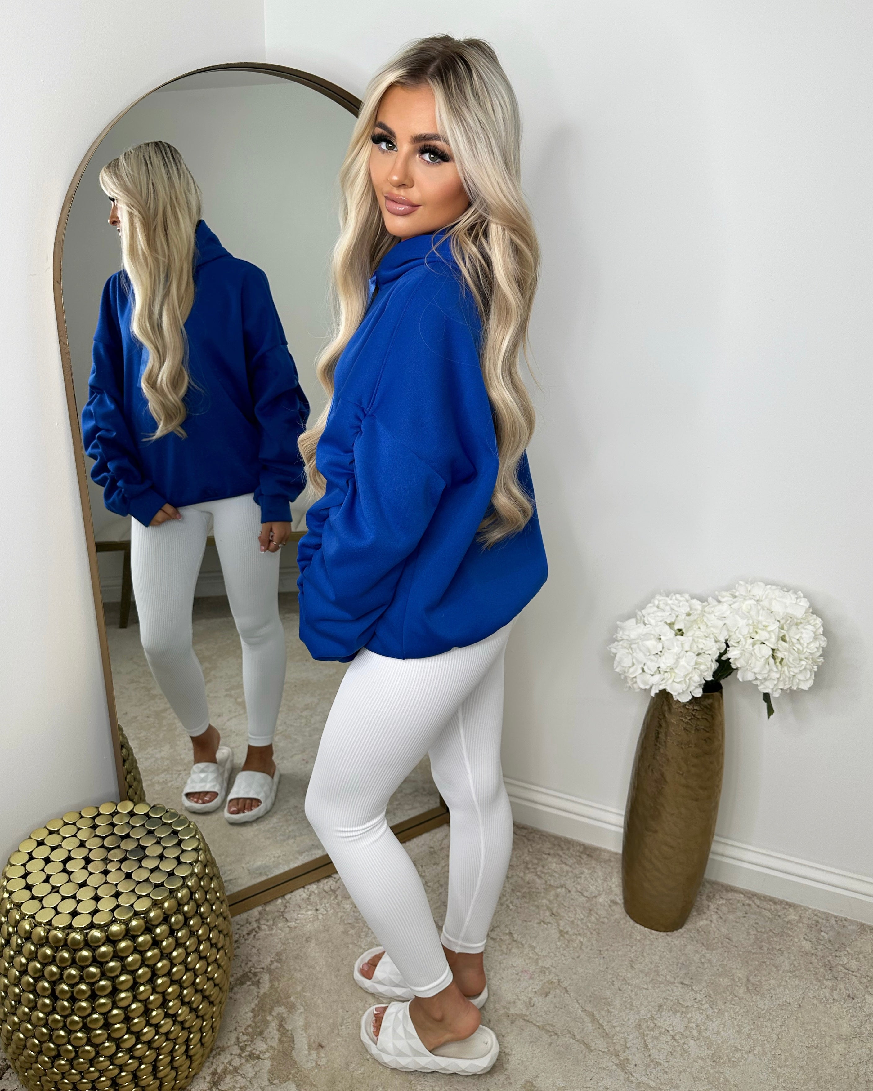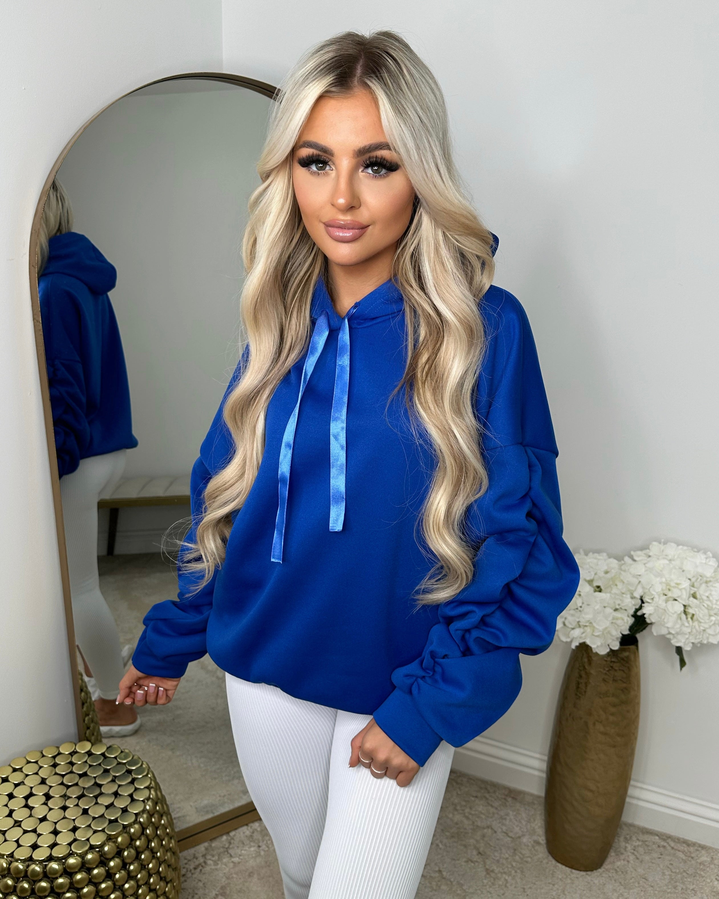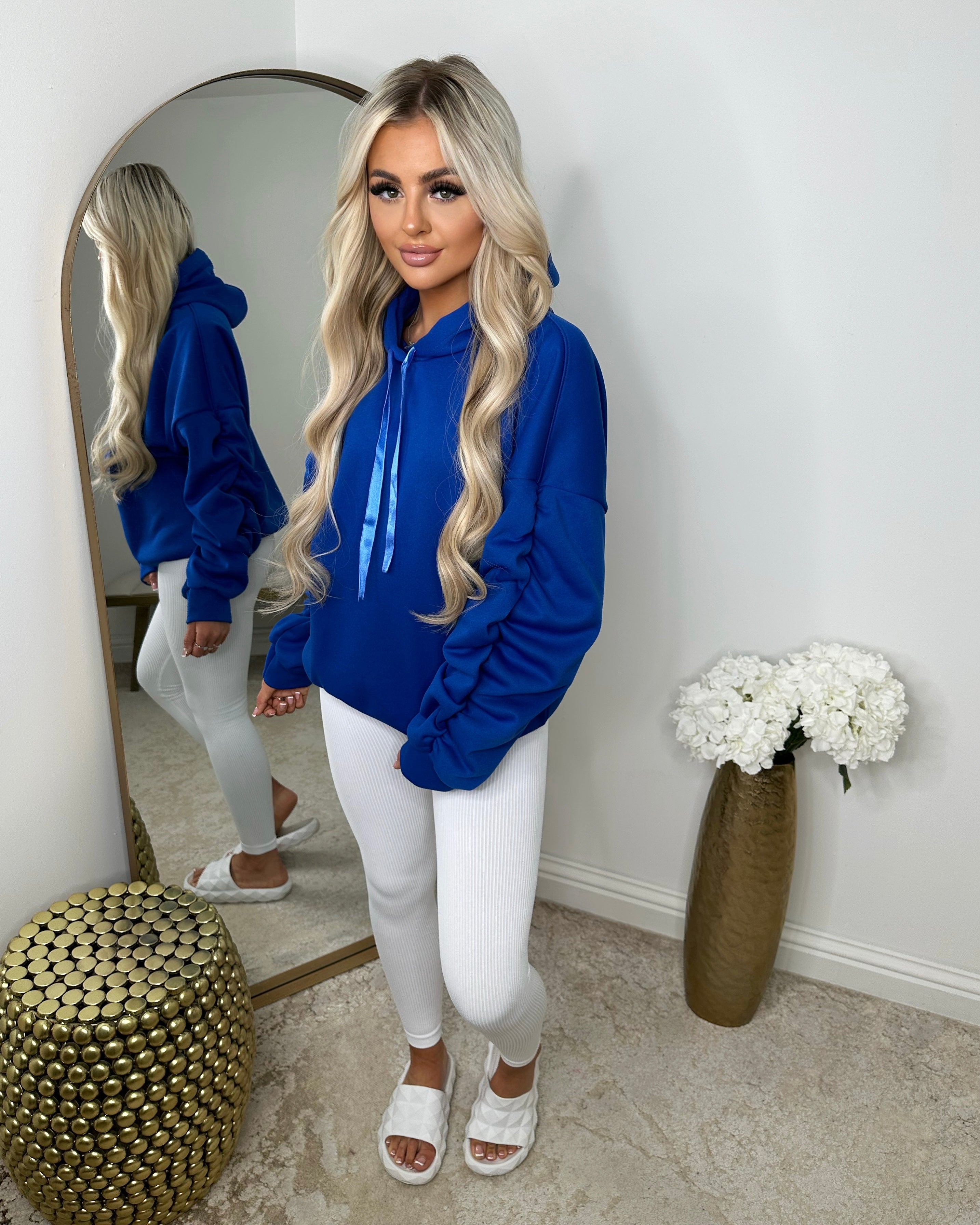 Rachael Ruched Sleeve Hoodie with Ribbon Detail - Royal Blue