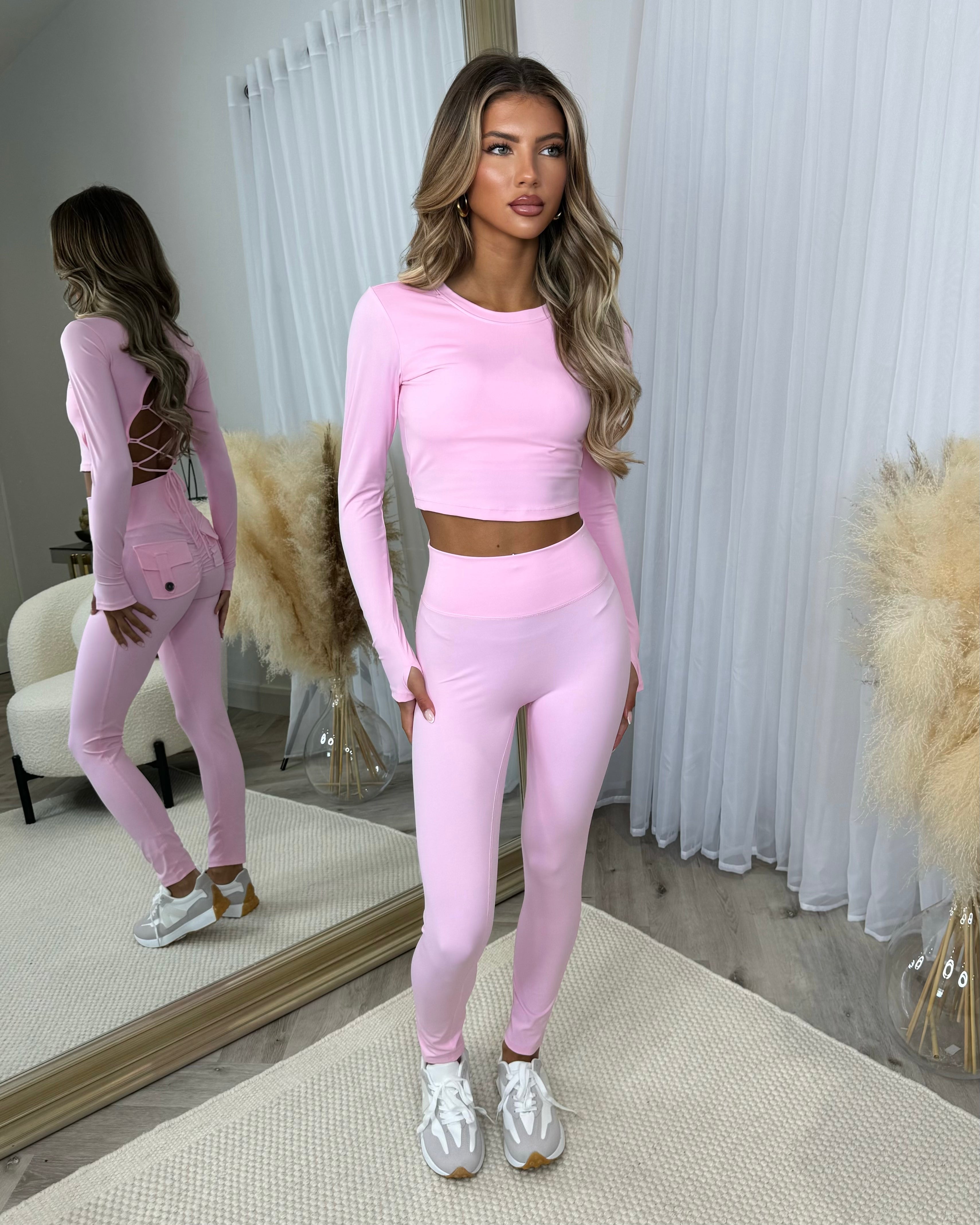 Shanice Ruched Bum Cargo Pocket Leggings- Baby Pink
