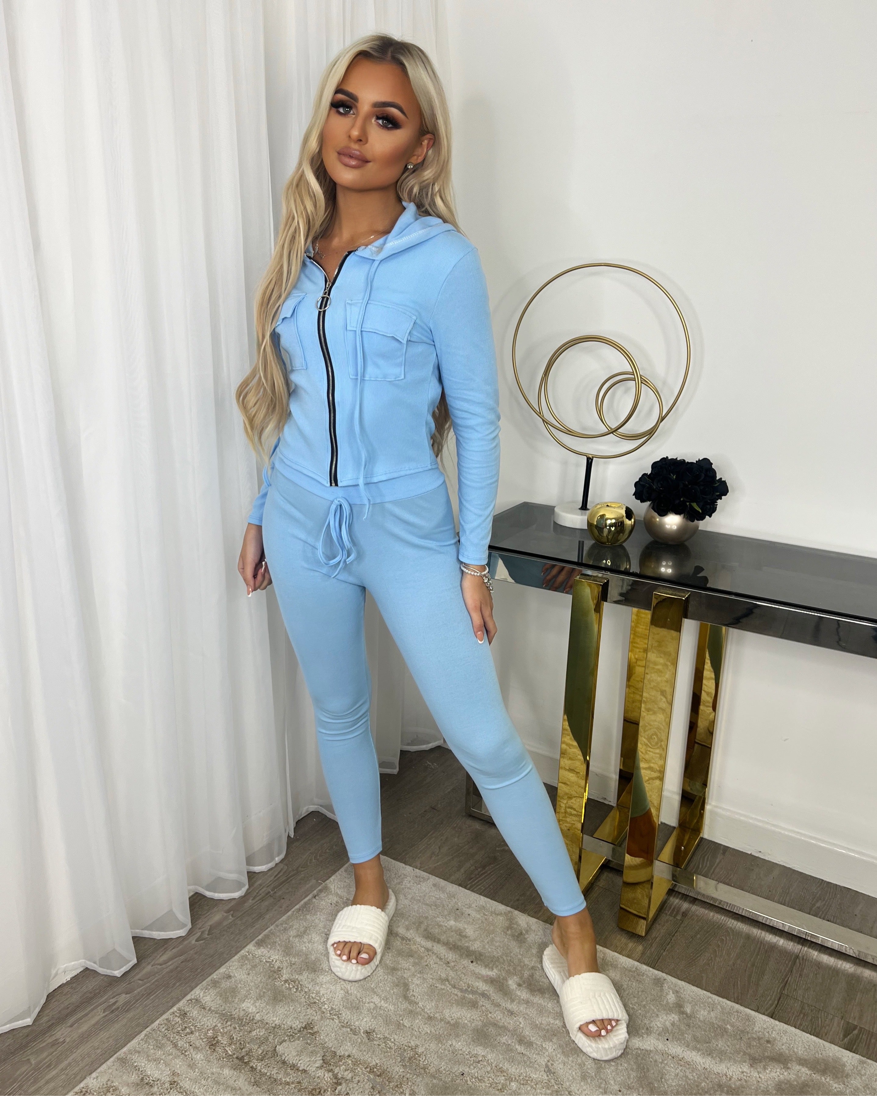 Simone Zip Front Pocket Detail Loungewear - Baby Blue