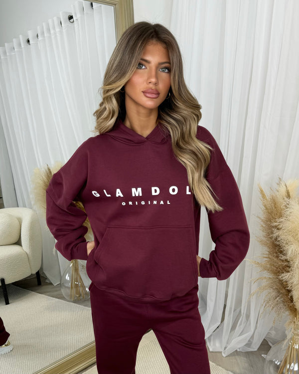 Skylar 'GLAMDOLL' High Density Front Detail Fleece Lined Hoodie - Burgundy