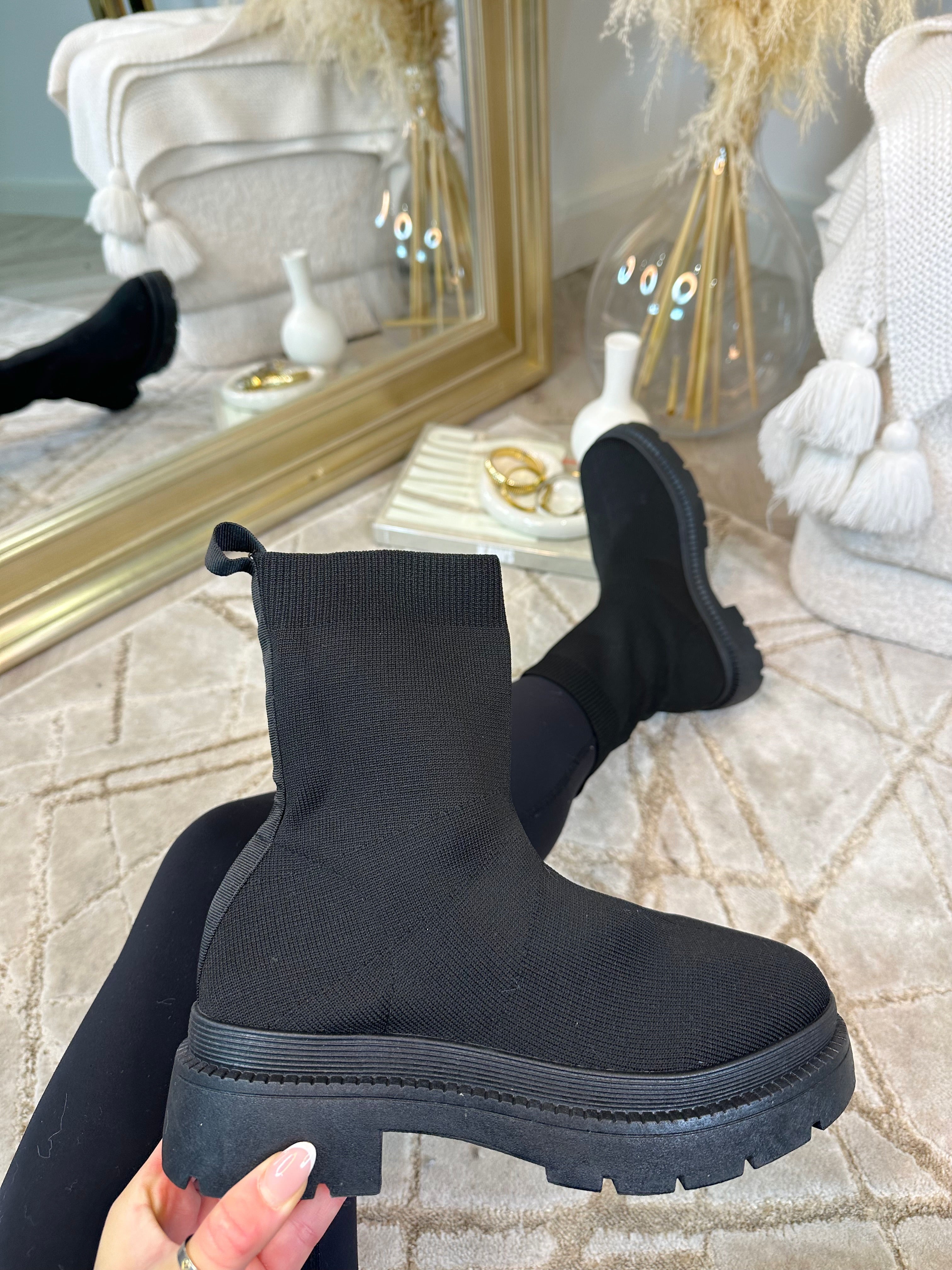 Sloane Ribbed Ankle Boots - Black
