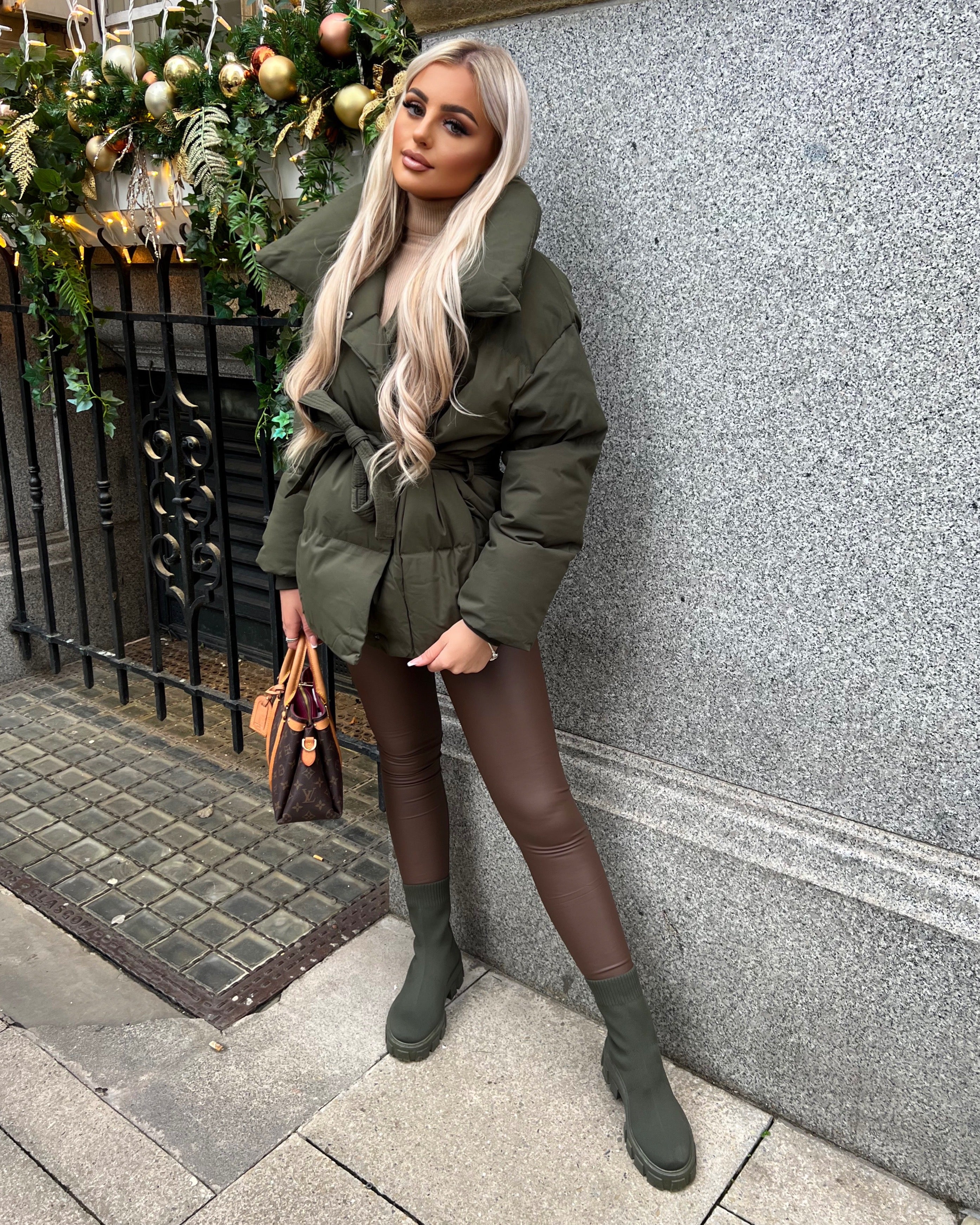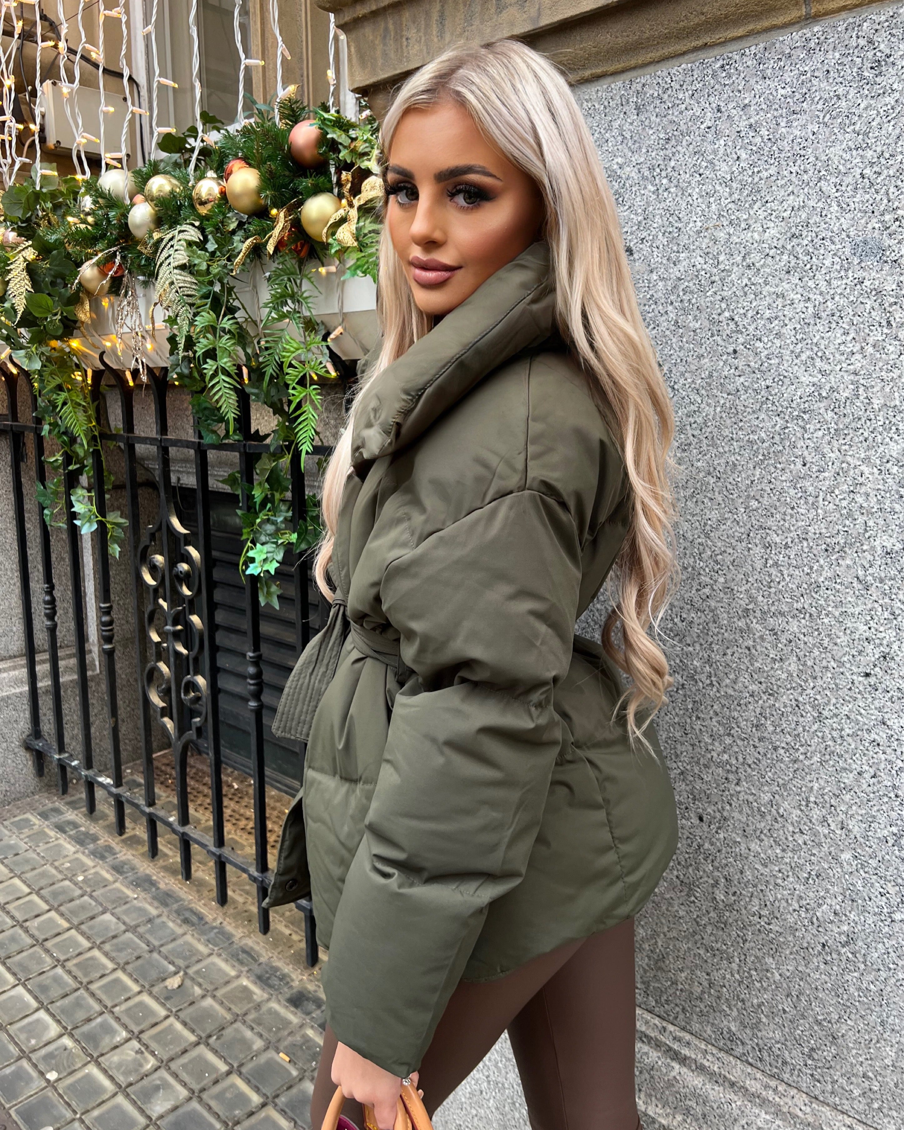 Sophie Short Belted Padded Duvet Coat - Khaki