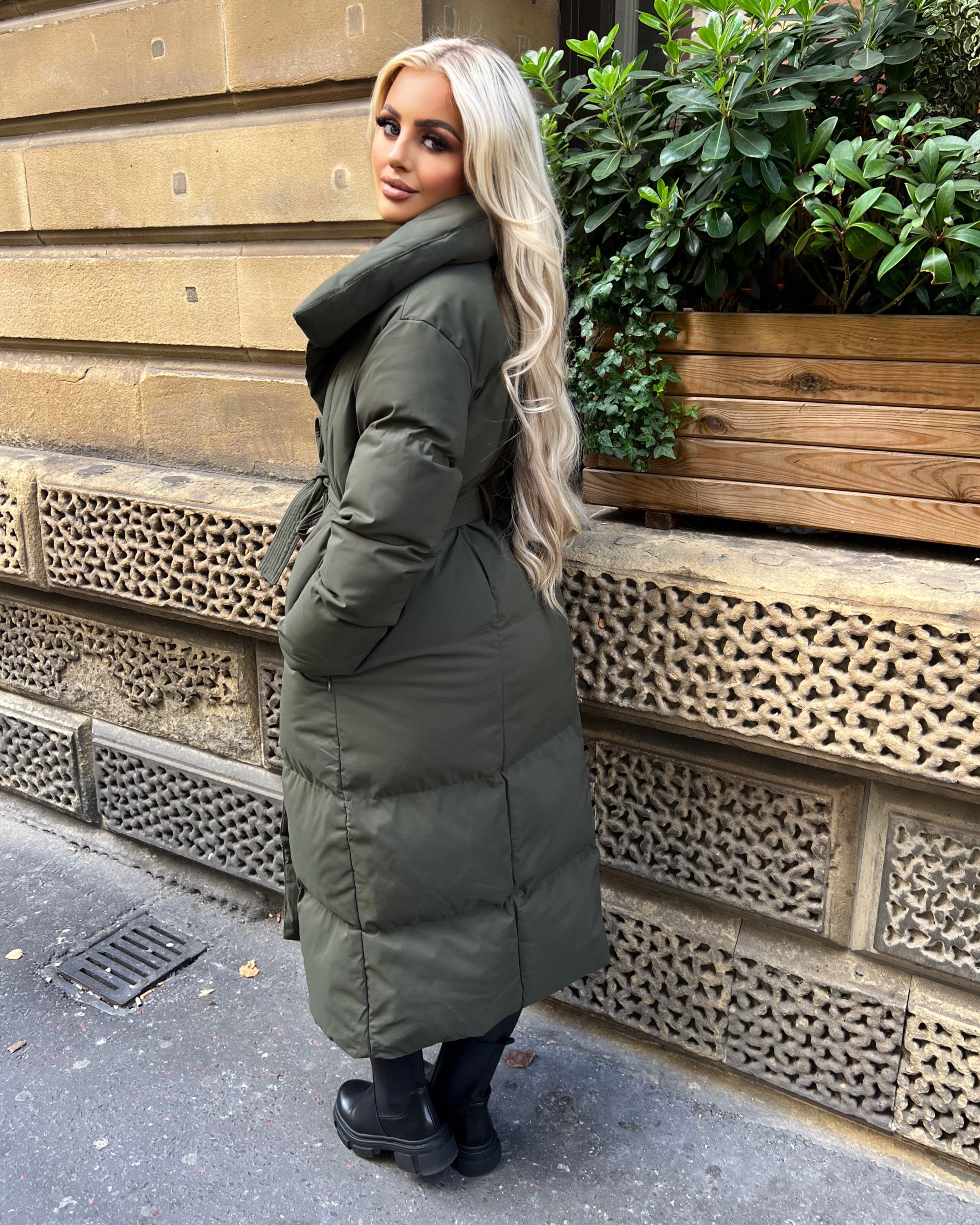 Trisha Long Padded Duvet Trench Coat - Khaki