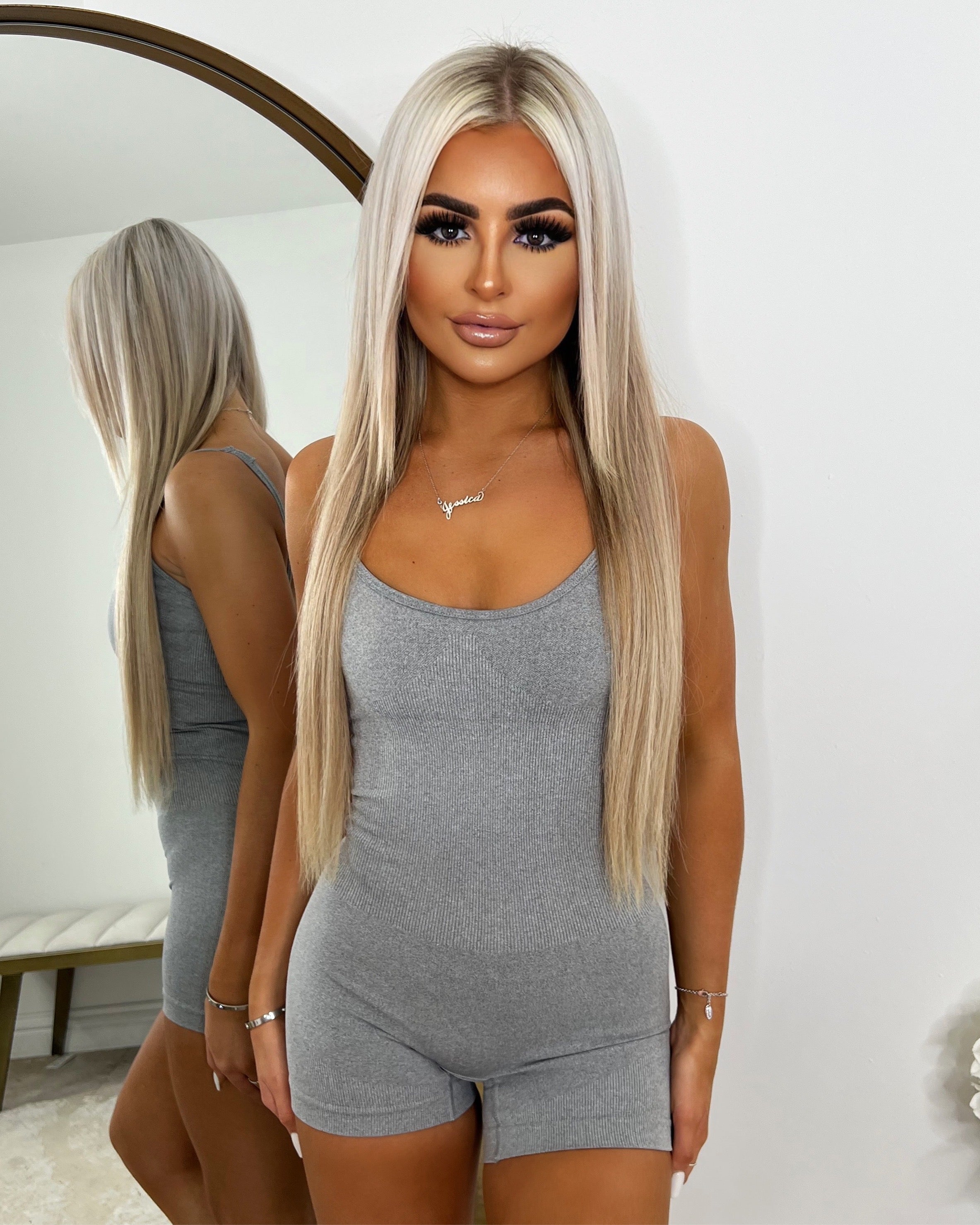 Trixie Short Spaghetti Strap Unitard - Light Grey