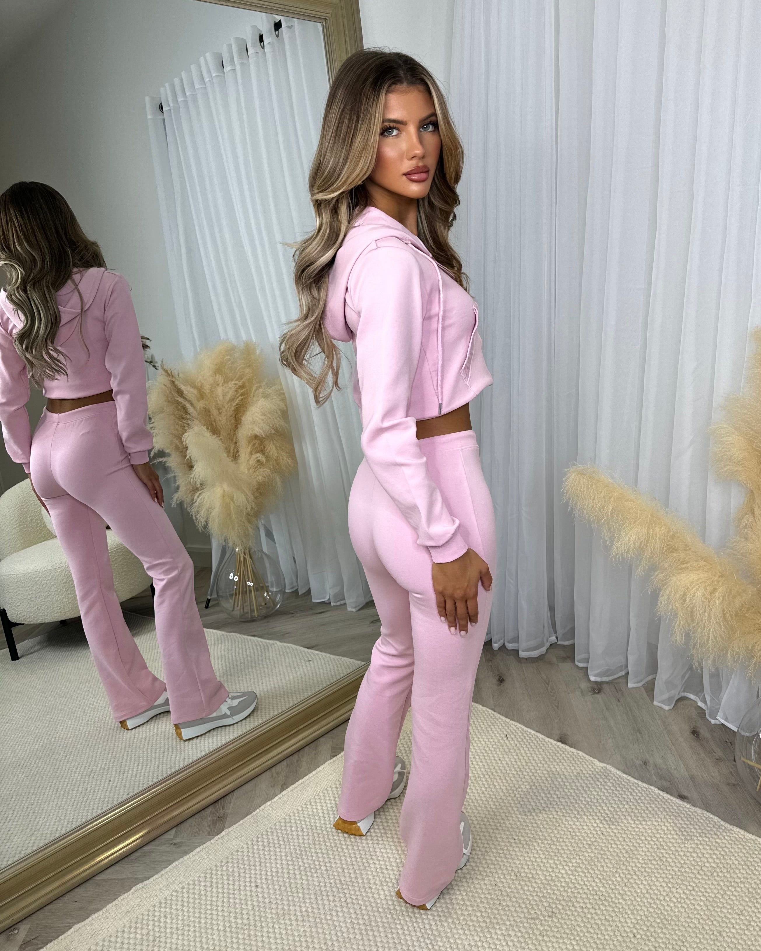 Tyla Fitted Cropped Jacket Wide Leg Tracksuit- Baby Pink