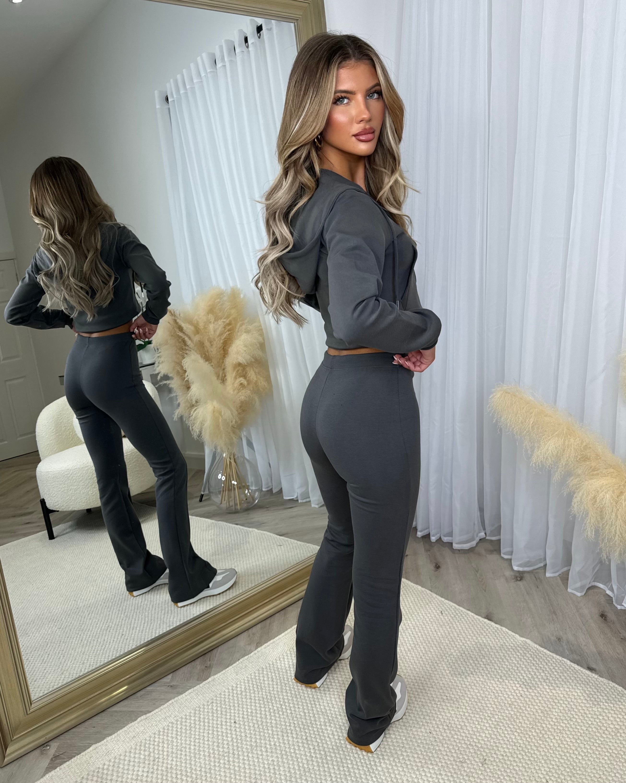 Tyla Fitted Cropped Jacket Wide Leg Tracksuit- Slate Grey